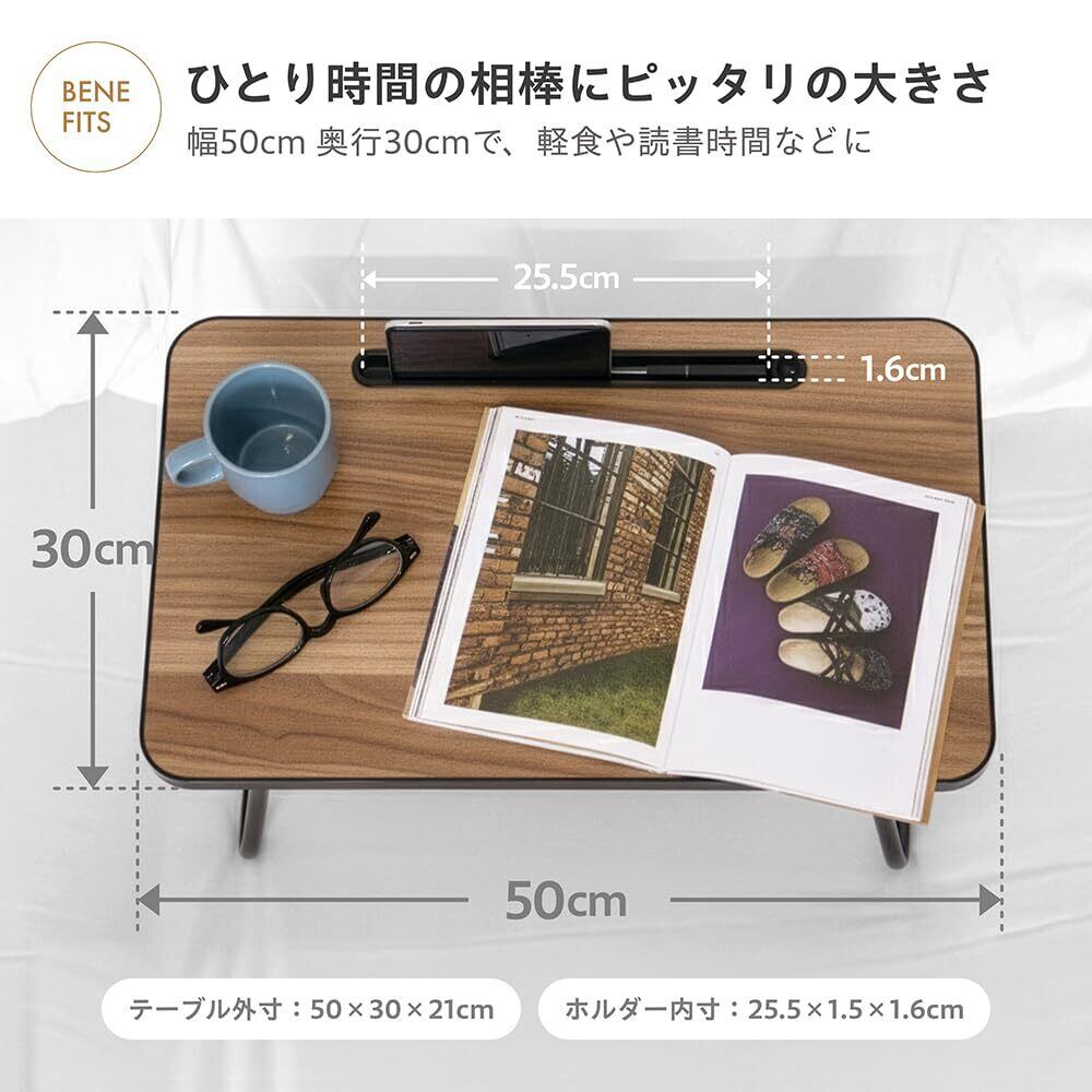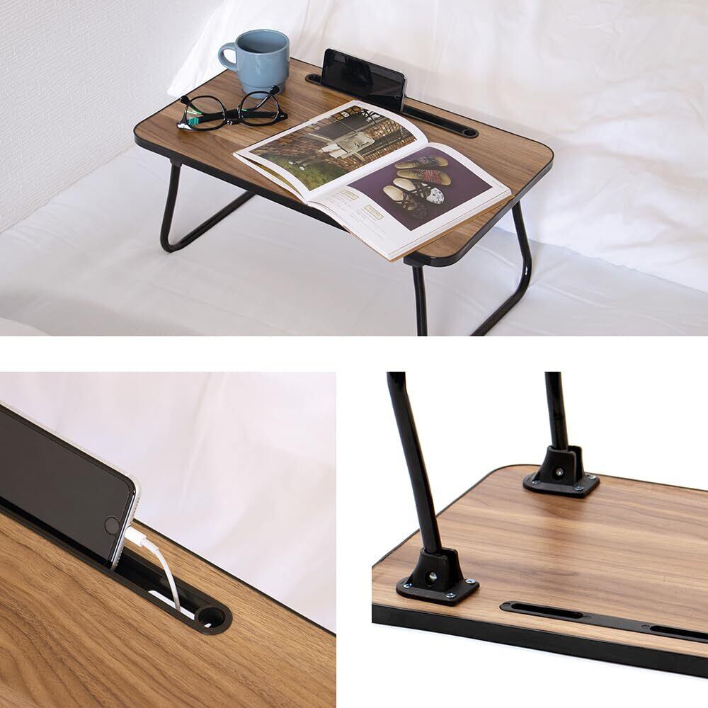 【多機能&軽量設計】 スマホ・タブレットホルダーとコード穴を搭載。動画を見たり、オンライン学習をしたりする際に、充電しながら端末を立てかけられて非常に便利です。重さわずか1.3kg、幅50cm×奥行30cmのミニサイズ。ベッドの上やソファなど、家中どこへでも手軽に持ち運べます。