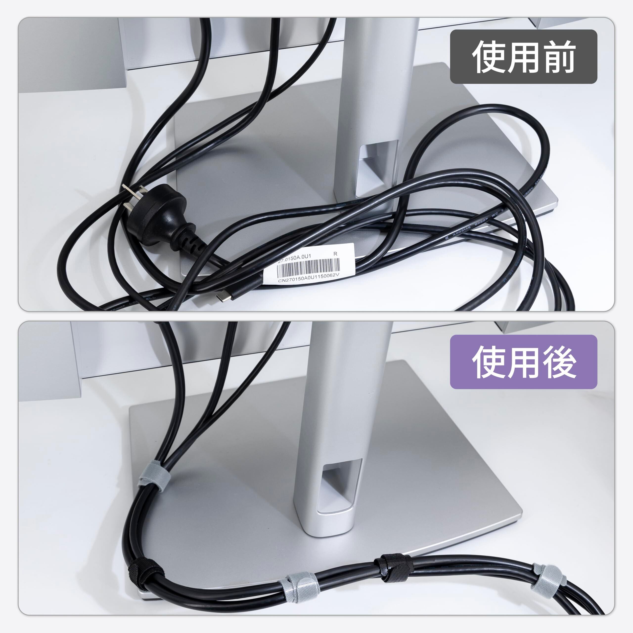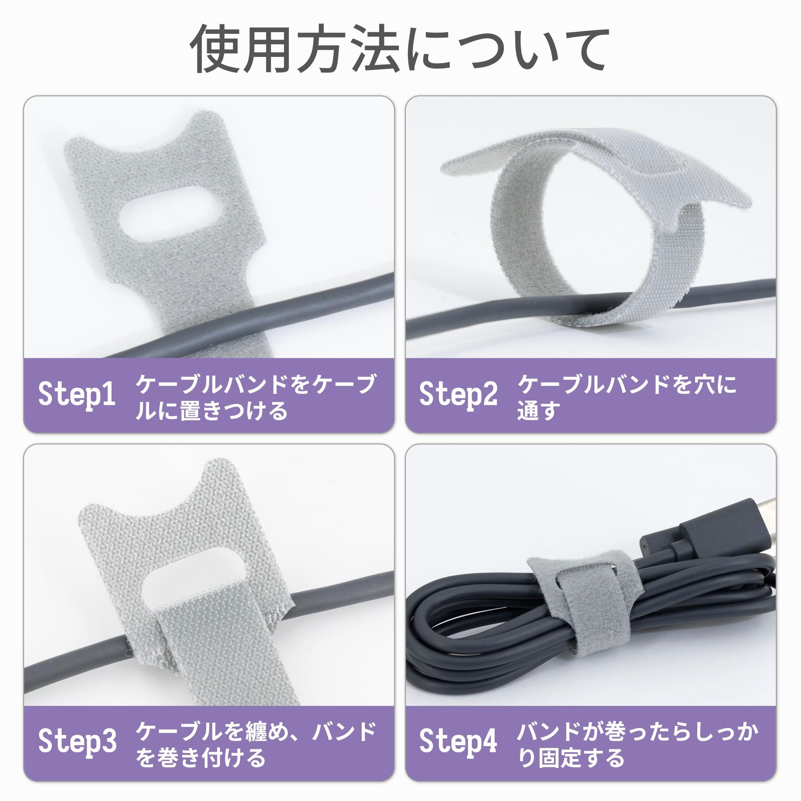 【両面・再利用可能】ケーブルバンドは両面使用可能で、お好みに応じてロゴ面とロゴなし面をお選びいただけます。一度使用したら取り外しても再度利用可能です