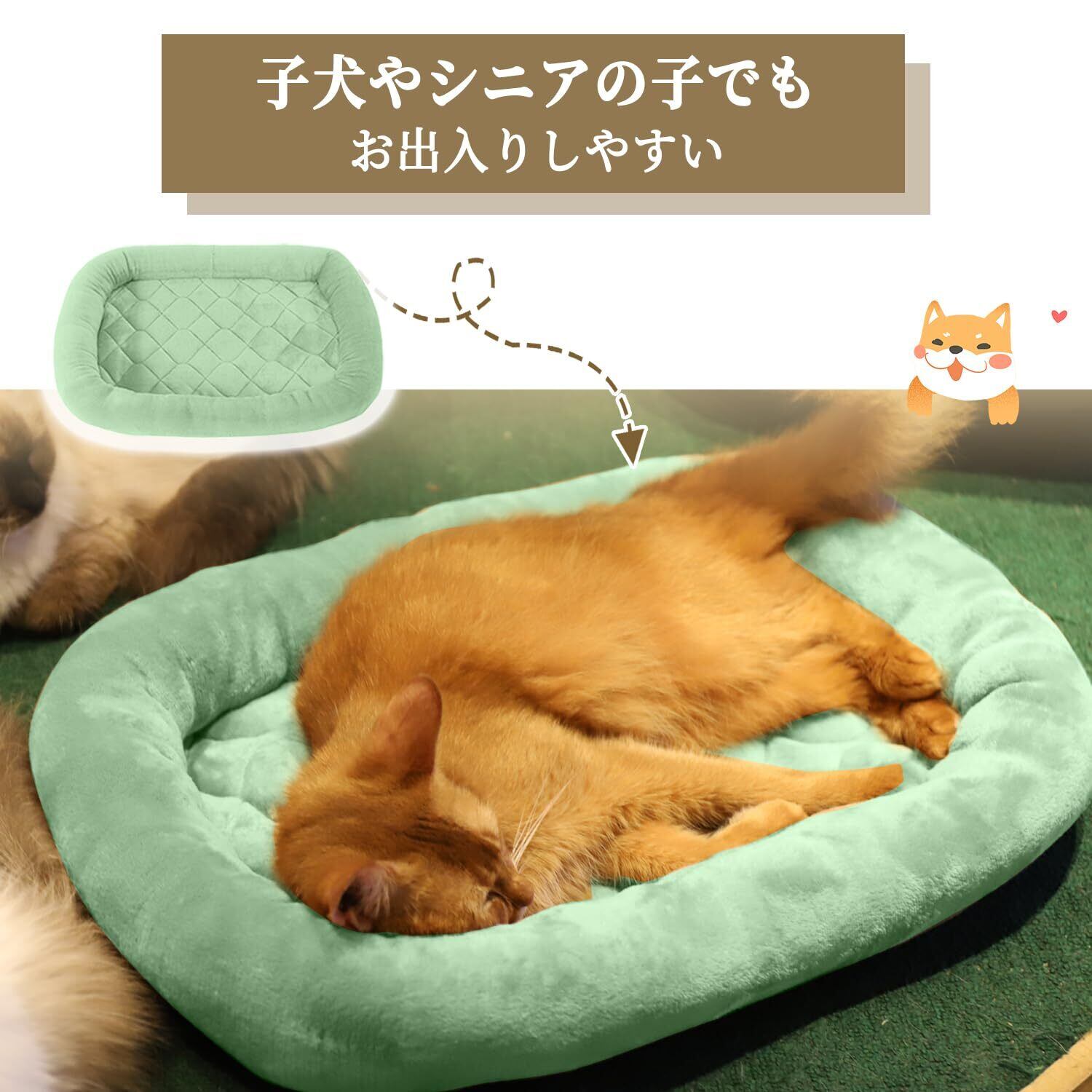 EMME ペットベッド 洗える ペットマット フランネル 犬 ベッド 猫 ペット用ベッド 小型 中型 子犬 老犬 介護 マット 洗える ペット用 クッション 滑り止め 寝心地良い ペット ぺっと 春 秋 冬 夏用 通年 清掃しやすい 74x48cm グリーン Mサイズ