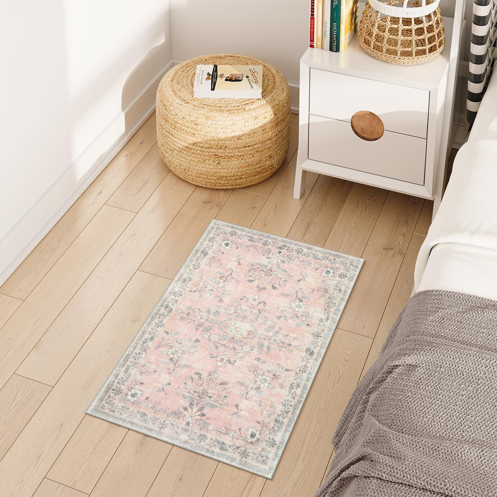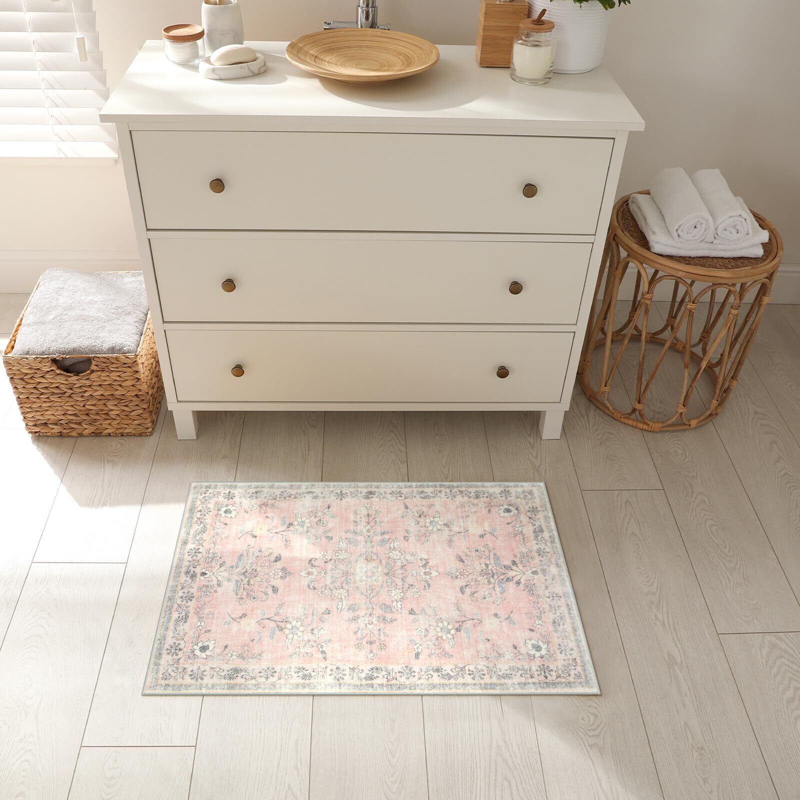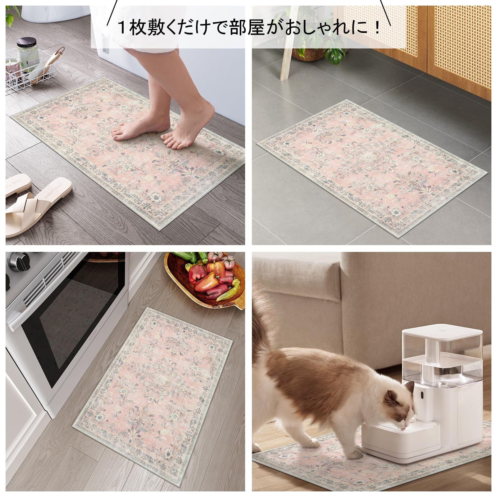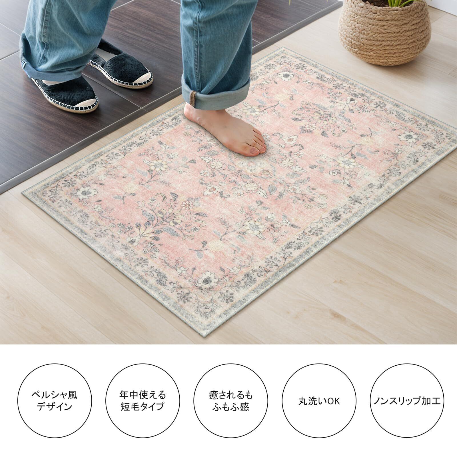 HAOCOO 玄関マット 室内 ペルシャ風 ラグマット 洗える 50х80cm 小さい おしゃれ 長方形 滑り止め 低反発 防音 屋外 泥落とし オールシーズン適用 耐磨耗性 軽量 花柄 コーラルピンク