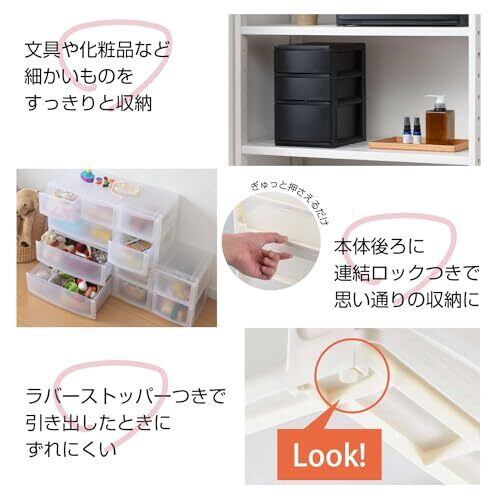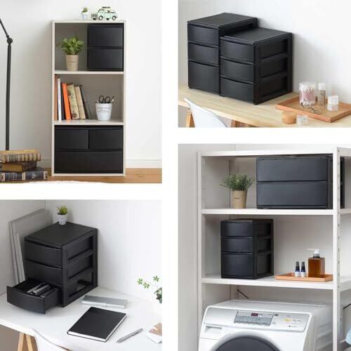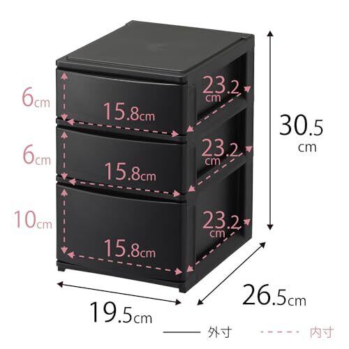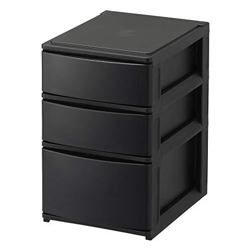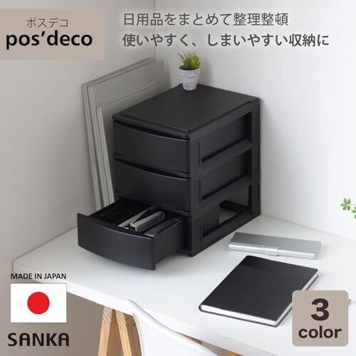 サンカ ポスデコ カラーボックスにピッタリフィット 引き出し収納ボックス ハーフ 3段(浅2深1) ブラック ずれを防ぐラバーストッパー 重ねて使える スタッキングチェスト ロック機構 日本製 カラーボックス 収納ケース 小物 衣装 ボックス (幅19.5x奥行26.5x高さ30.5cm) NpdA5-a2f1BK