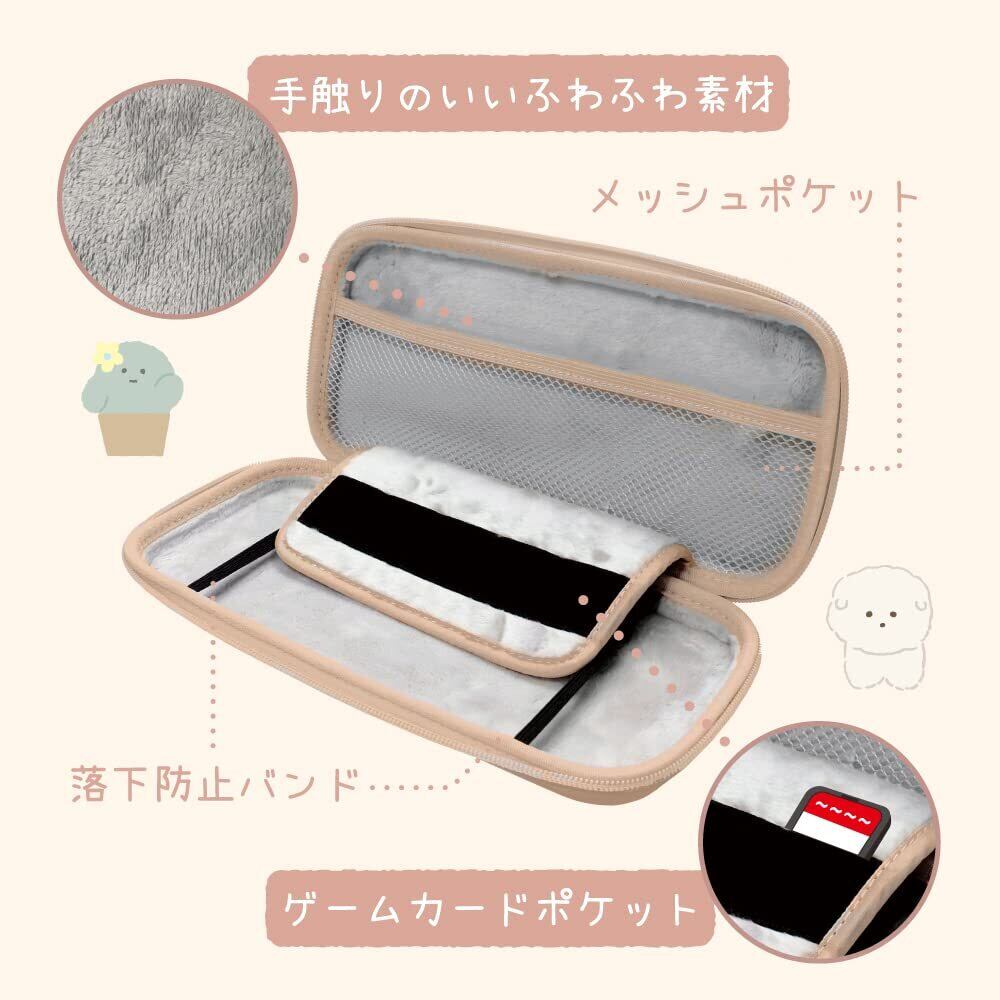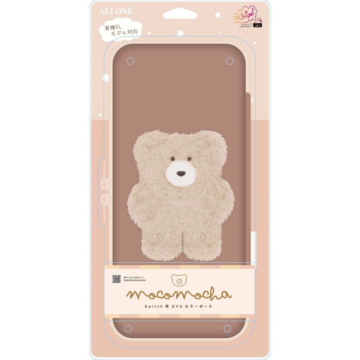アローン(Allone) Switch用EVAカラーポーチ#Unipo Q-LiA モコモカ ミルクティー 12×4.8×26cm ブラウン もこもこ素材 内側ポケット付 軽量 switch/switch有機EL対応 ダブルファスナー 傷や汚れから保護 かわいい ALG-NSUQLMT