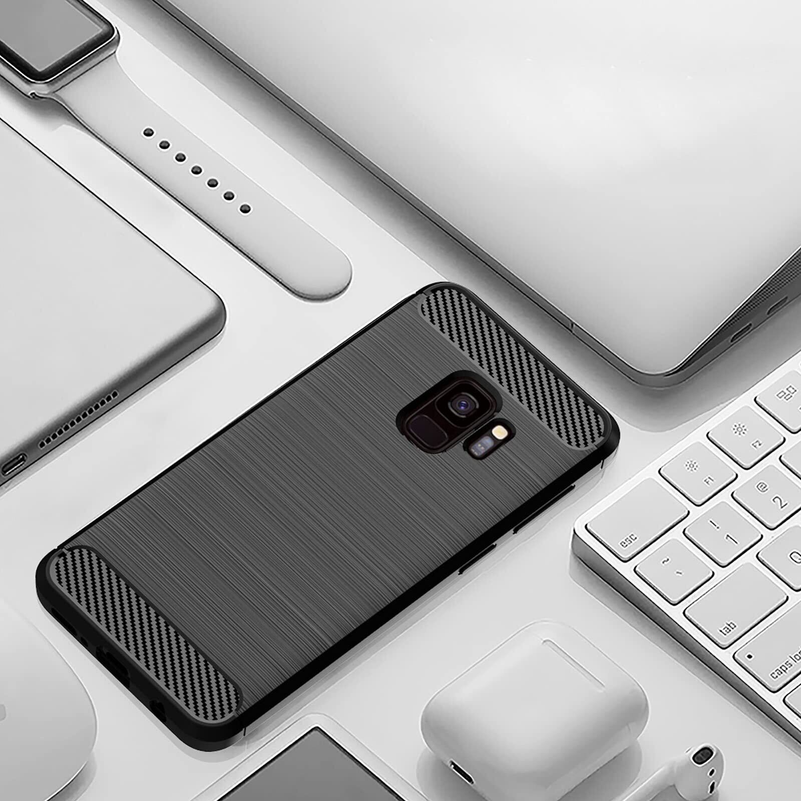 【UNEED】Galaxy S9 用の スマホケース SC-02K /SCV38 用の ケース カバー ケース 炭素繊維カバー (素材/TPU) 指紋防止 滑り止め 薄型 軽量 耐衝撃 簡易脱着 ソフトケース カラー:黒