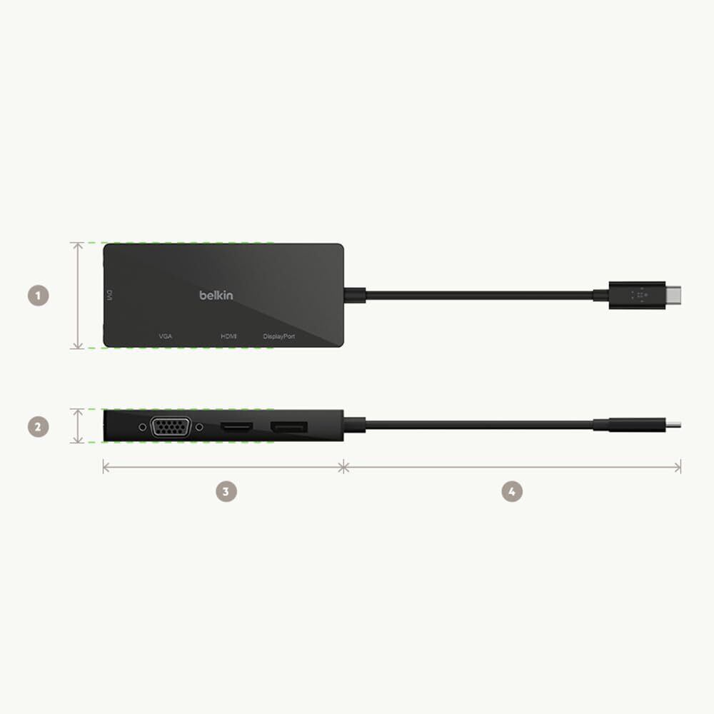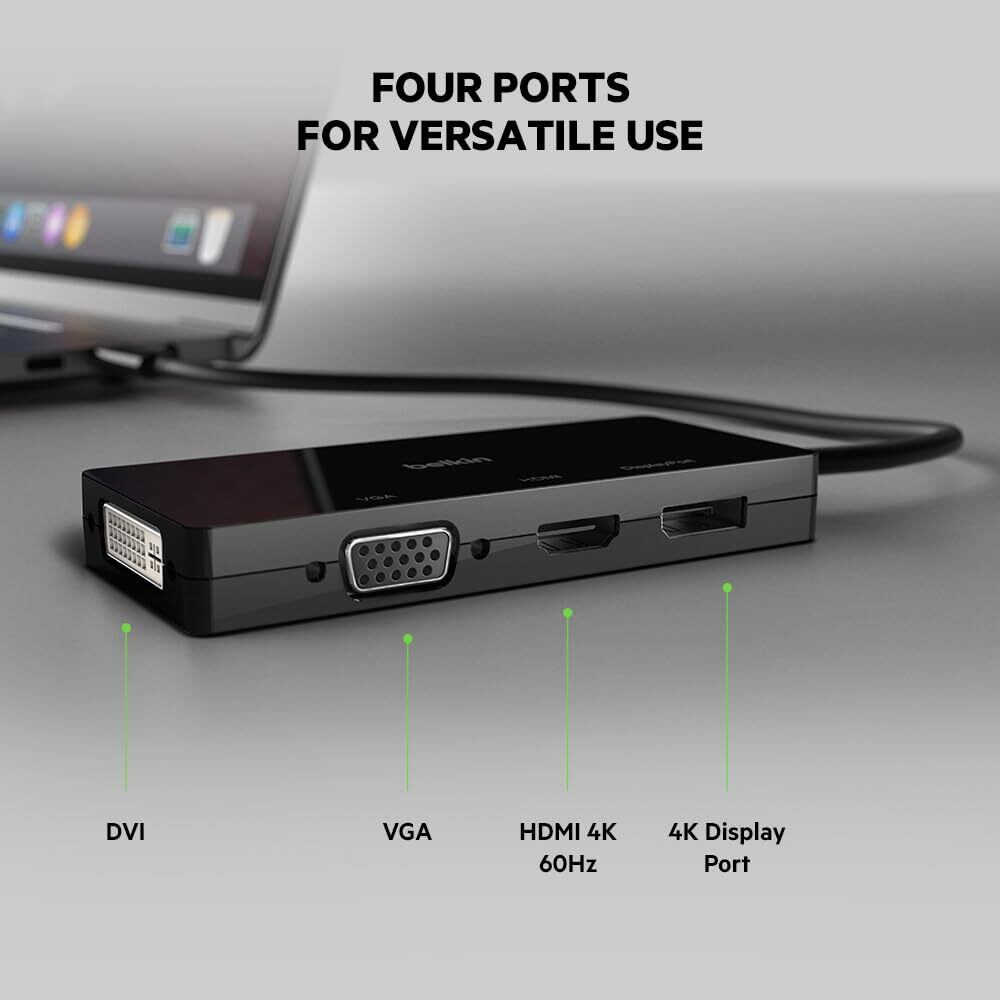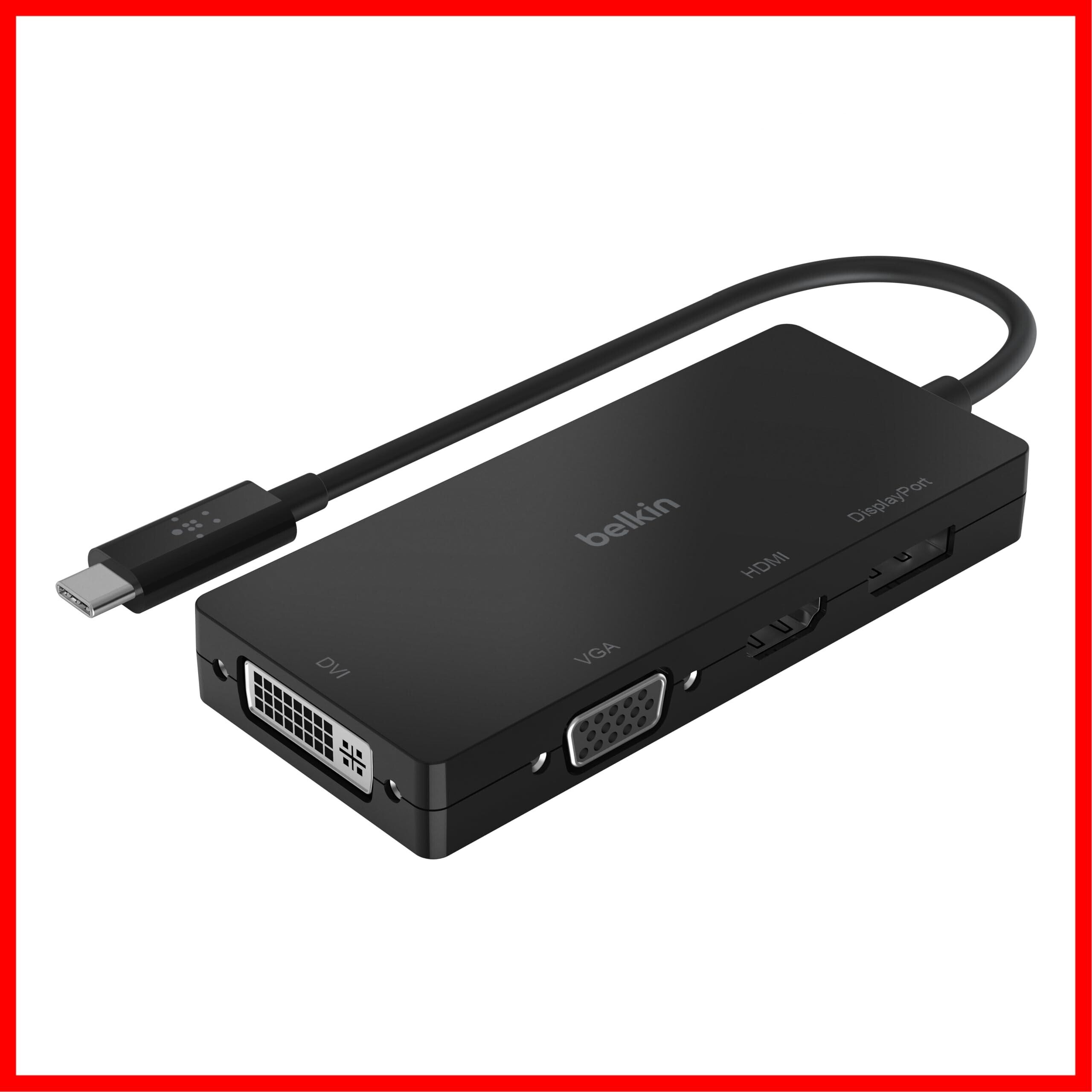 Belkin USB-C to HDMI + VGA +DVI + DISPLAYPORT 4 in 1 映像用入力端子 変換アダプタ iPad/iPad Pro/iPad mini/MacBook/MacBook Pro/MacBook Air/Windows/Surface/Chromebook 対応 AVC003btBK AVC003