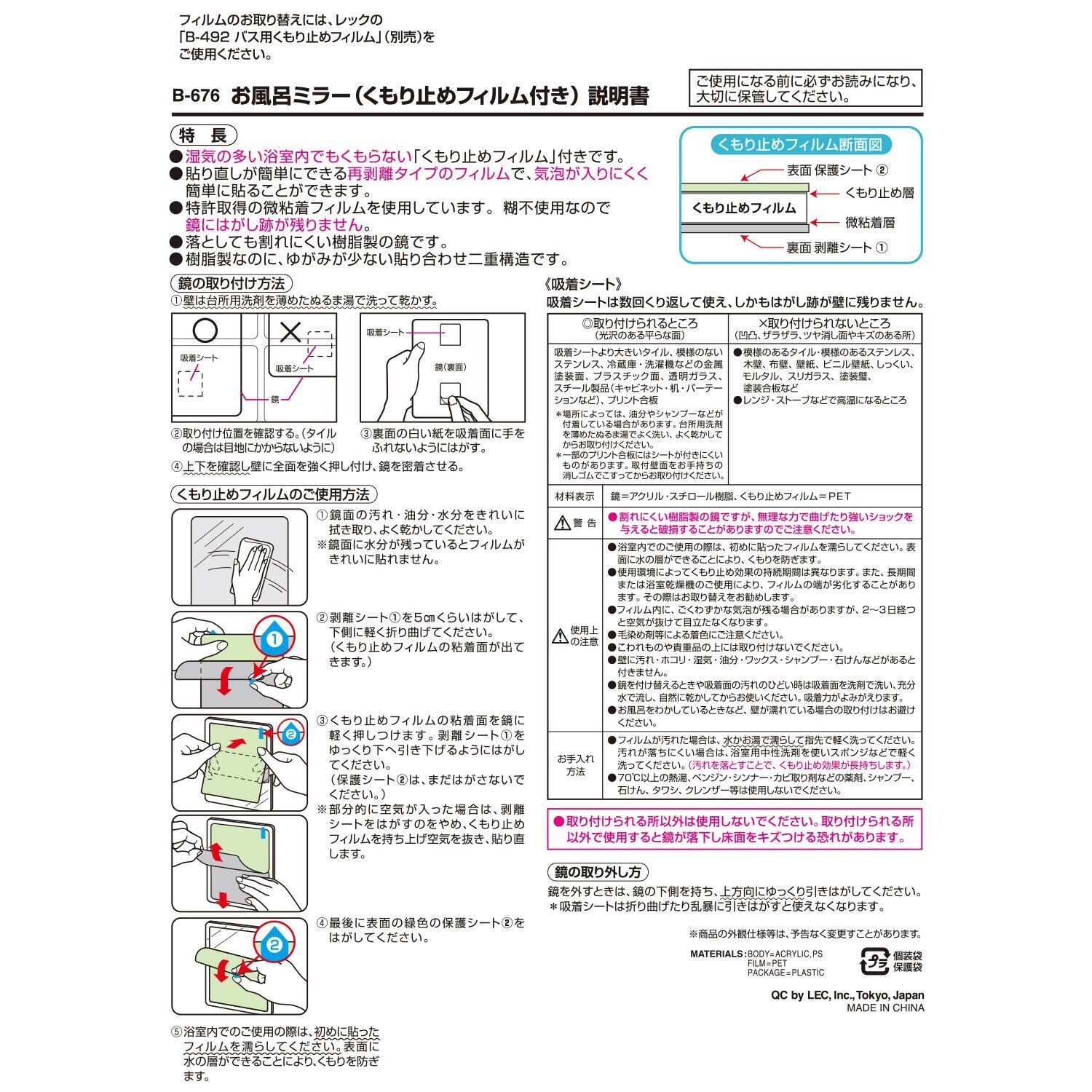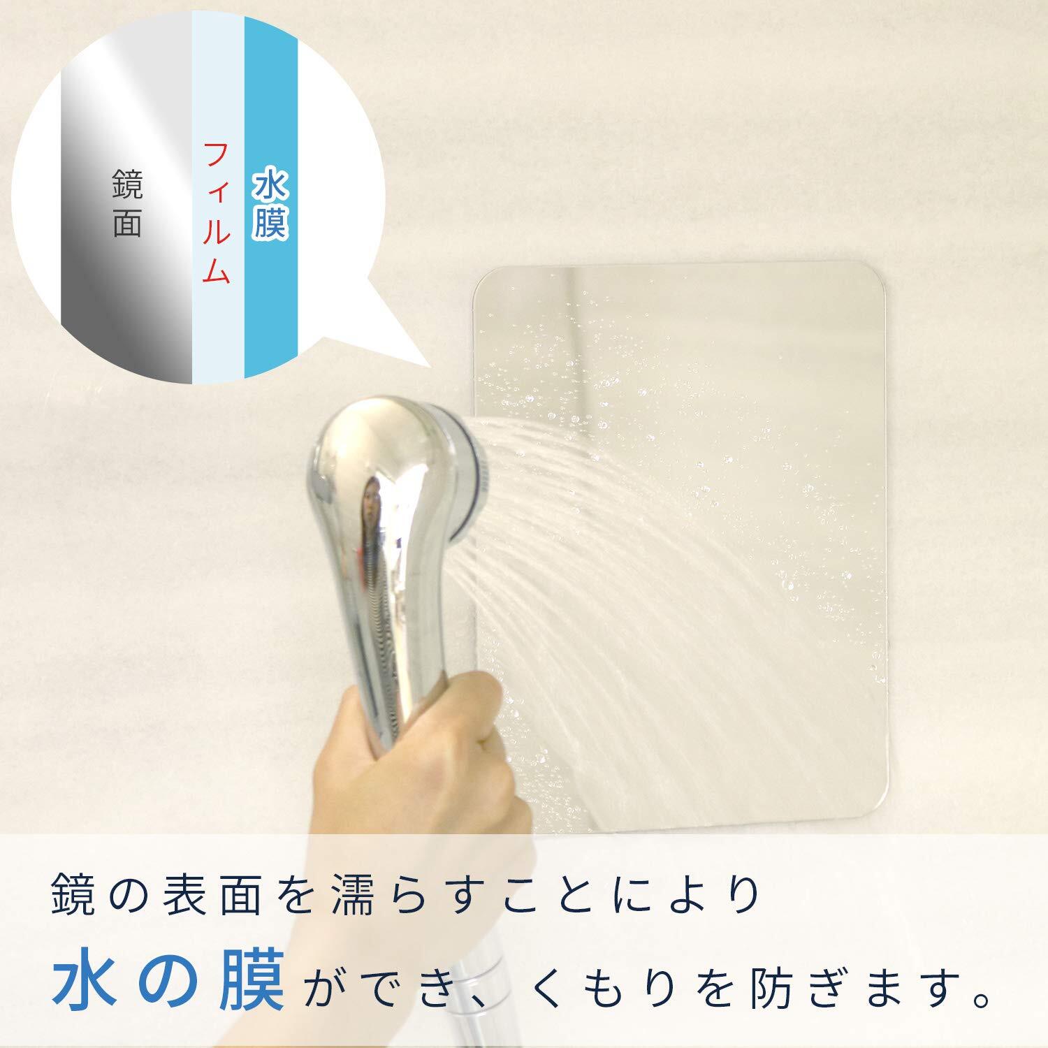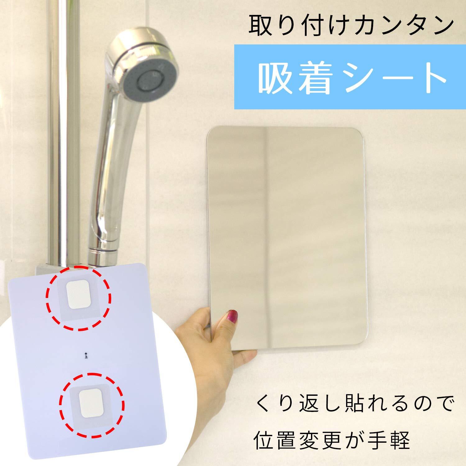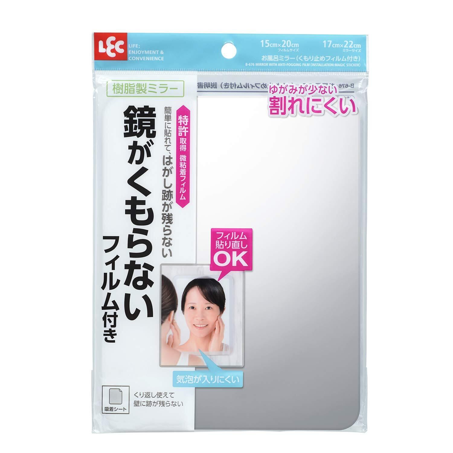 レック お風呂ミラー くもり止め フィルム付き (17✕22cm) 割れにくい 吸着シート取付 貼り直しOK 樹脂製