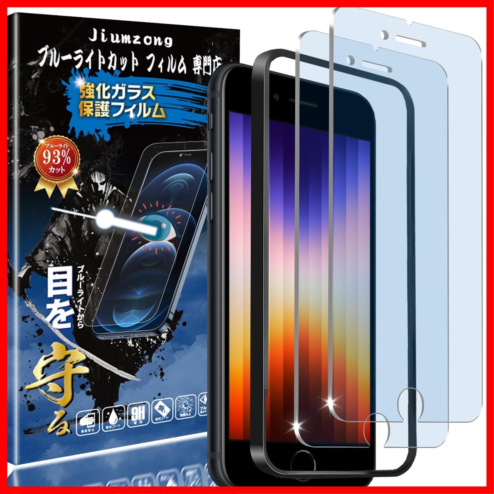 【ブルーライトカット 93%】【目の疲れ軽減】iPhone SE3 第3世代/SE2 第2世代 用の ガラスフィルム iPhone8/iPhone7/6/6s 用の 液晶保護 フィルム 保護ガラス レンズ保護フィルム