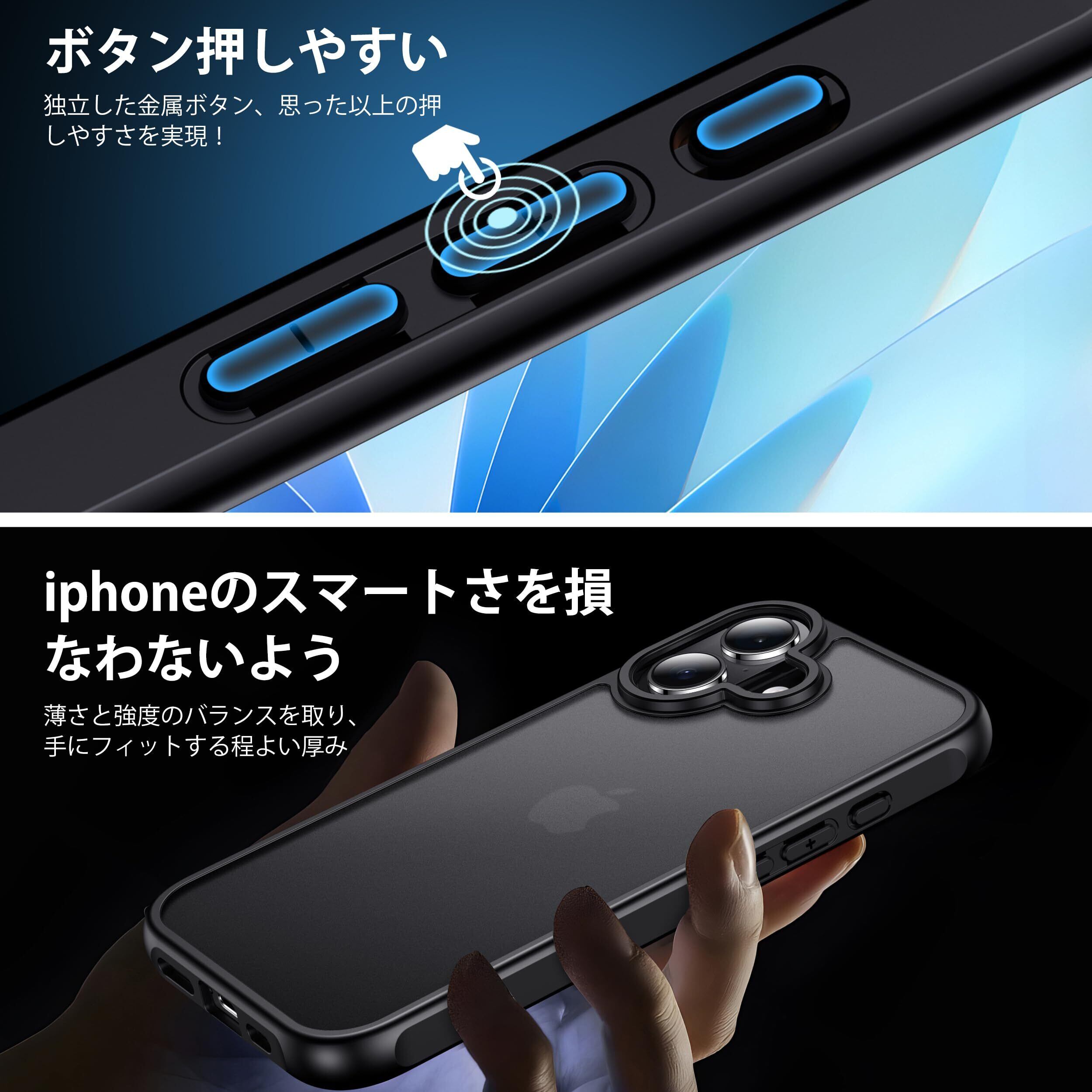 【絶妙バランス・快適操作】ケースの保護性能を保ちながら、スマートさを損なわないよう、薄さと強度のバランスを取り、iphone17の持つ薄さ・軽さをできる限り損なわないよう設計した。柔軟性の高いパンパーにより、装着は押し込むだけで簡単!アイフォン17のボタンやレンズなどの細部に基づいて快適さが保ち、最適な設計で作り出すアイホン17専用スマホケースです。ケースをつけていないかのように快適に使用できます。