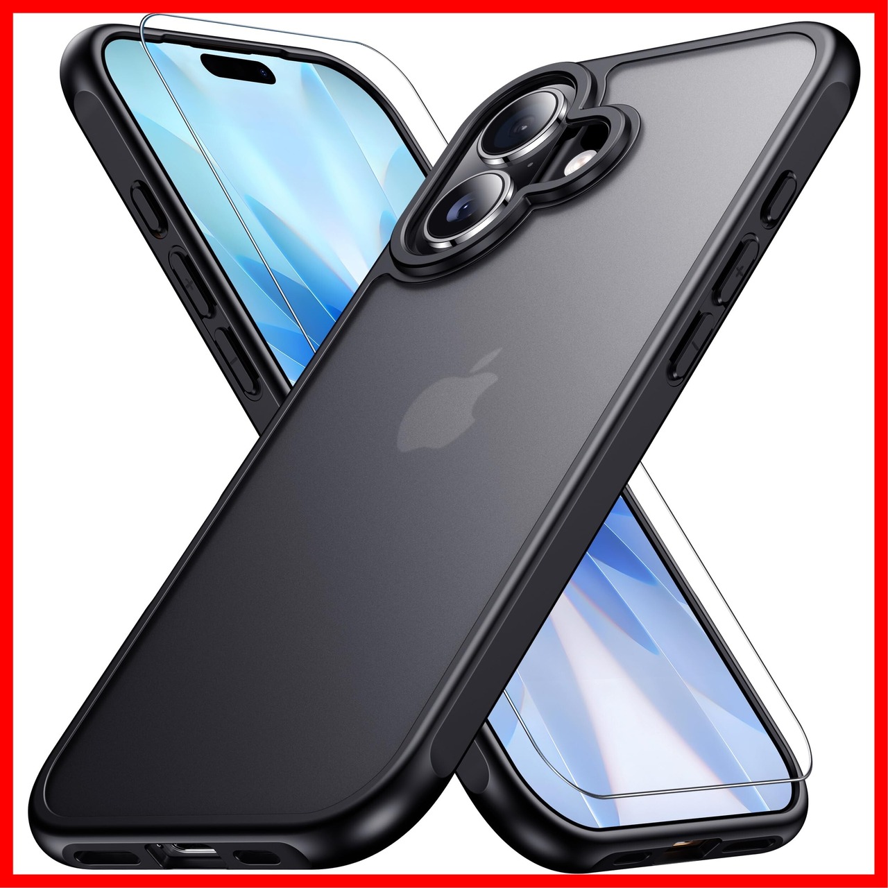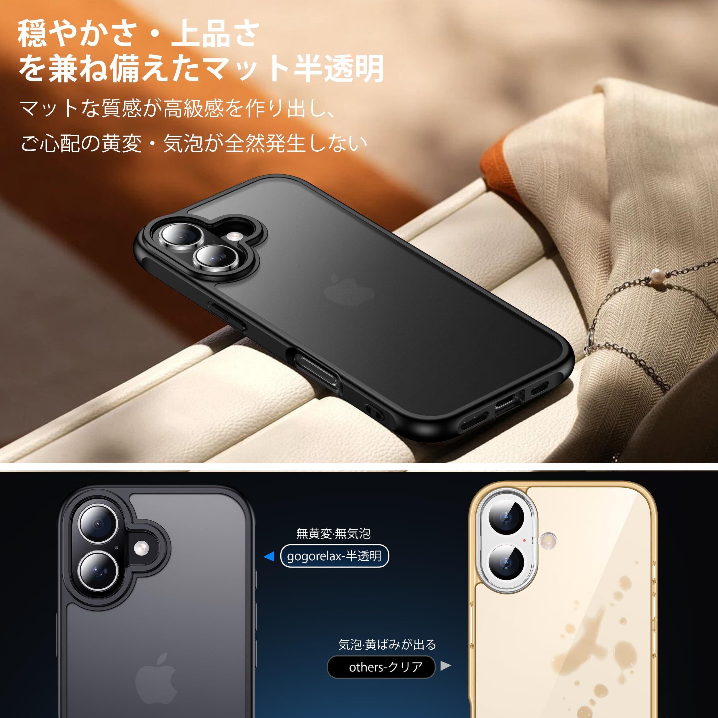 iphone 17 用 ケース 【米軍MIL規格 指紋防止】 ガラスフィルム付き 半透明 アイフォン17用ケース 耐衝撃 アイホン17 用 スマホケース マット感 黄ばみなし あいほん17 対応 ワイアレス充電対応 あいふぉん17 用 カバー ストラップホール付き マットブラック 6.3インチ gogorelax