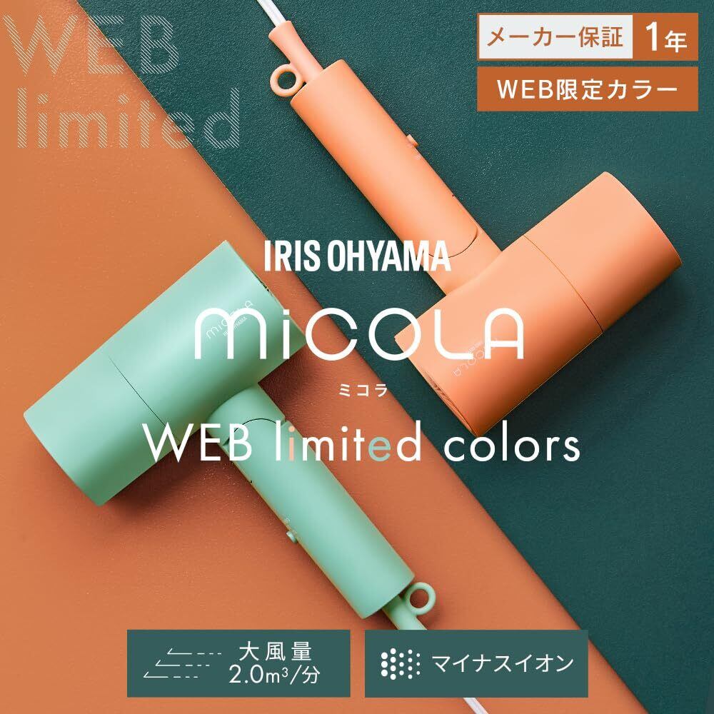 【MICOLA・限定カラー】アイリスオーヤマ MICOLA ドライヤー 大風量 速乾 軽量 スピーディー イオンドライヤー 3段階調整 ノズル付き HDR-M102-G ミントグリーン
