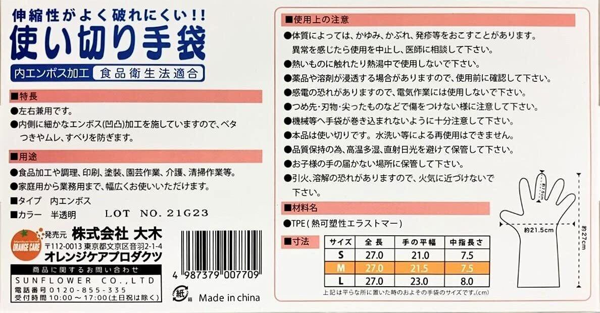オレンジケアプロダクツ 使い切り手袋 Mサイズ 100枚