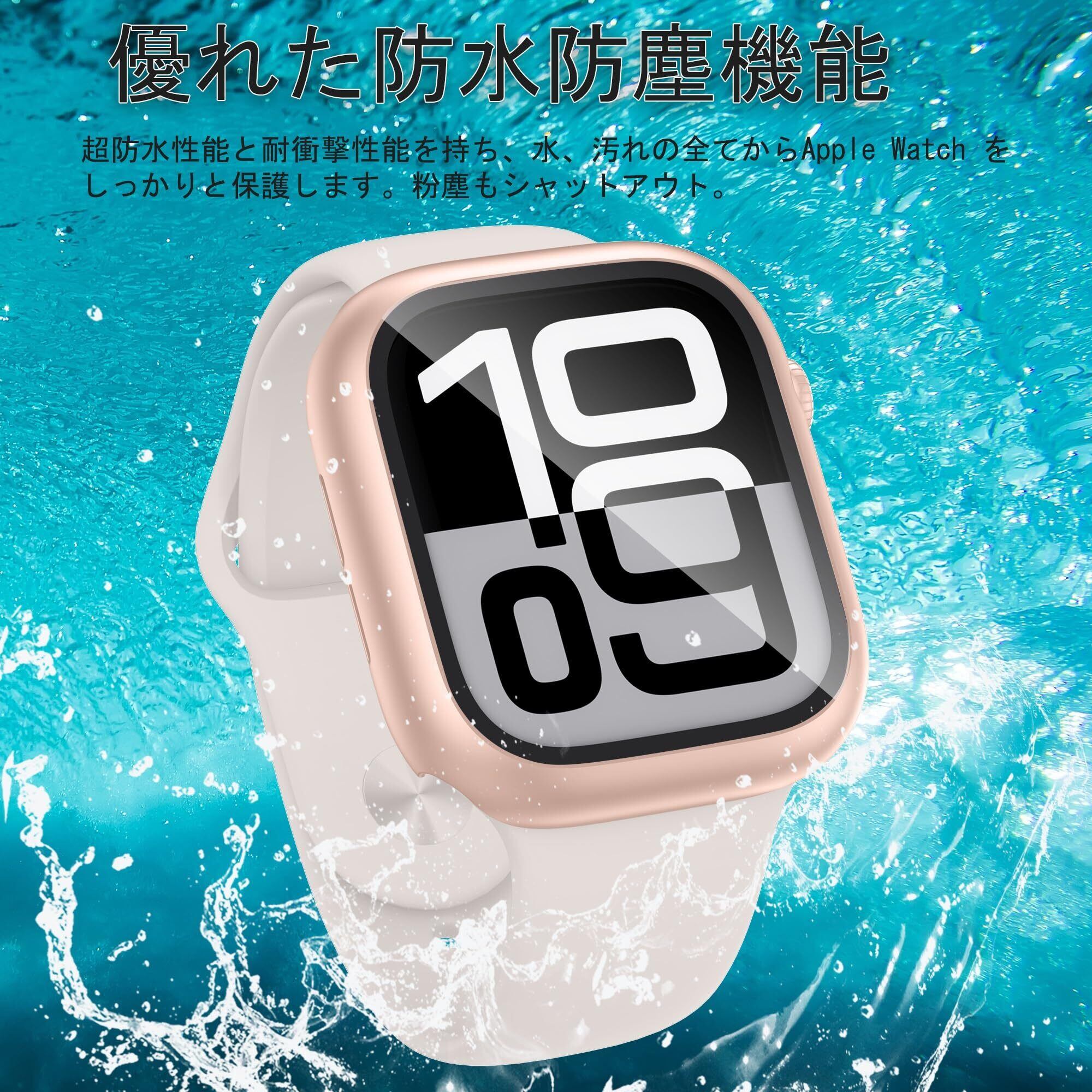 「Apple Watch Series 11/10 保護カバー+ガラスフィルム一体型」機能性とデザインを兼ね備えて、優れたApple Watch 防水ケースです。Apple Watch に合わせて丁寧に作られたフレームなので、違和感なくApple Watch 本体にジャストフィット!日常で起きる損傷リスクを高強度なフィルム層が防ぎ、液晶をキズから保護します。