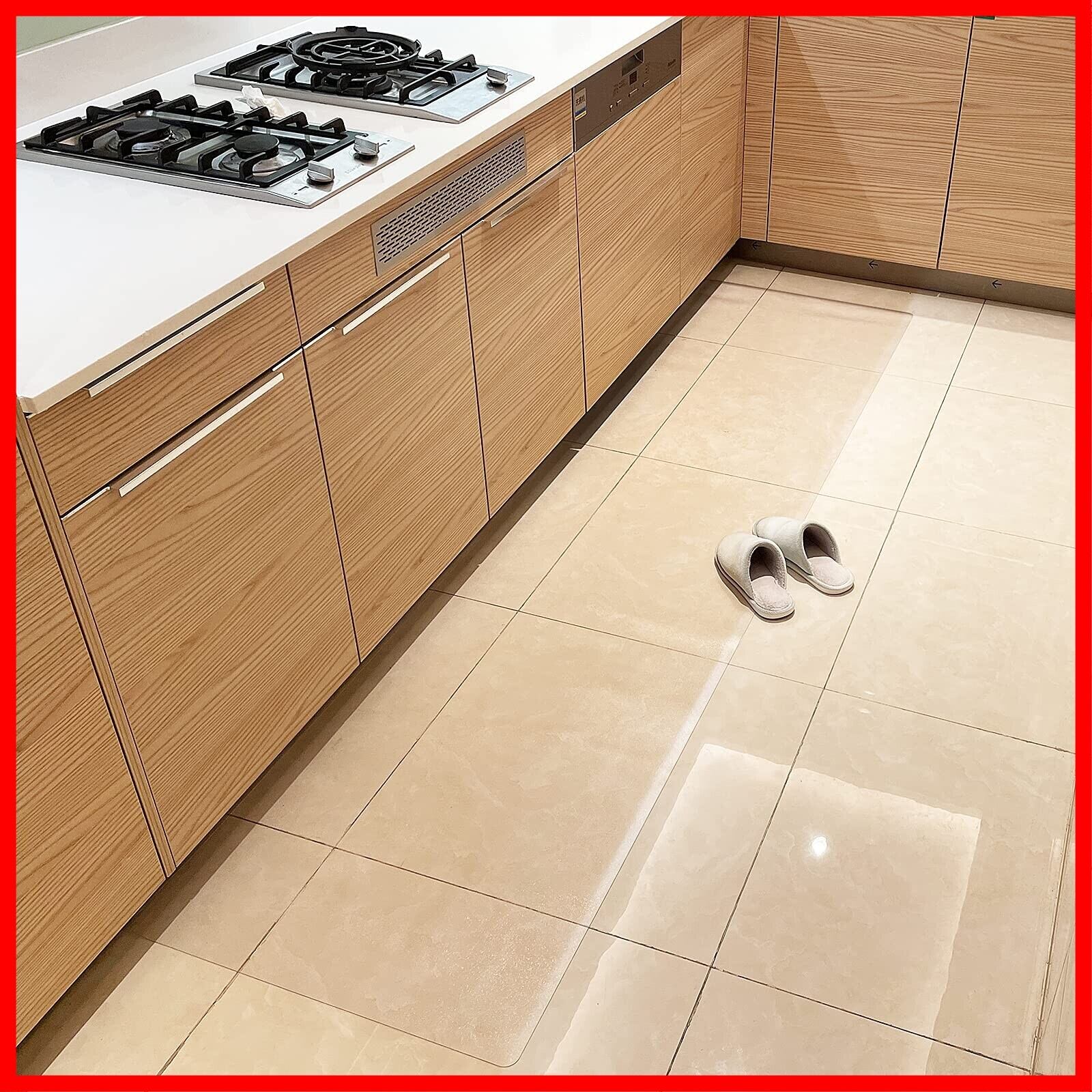 【透明マット・そのままの美しさ】キッチンマットのデザインやカラー、素材は豊富にありますが、キッチン・お部屋のインテリアや雰囲気に合うものを選ぶとなると、どれを選んでいいのか悩んでしまう人も多いかも知れない。透明のキッチンマットであれば、フローリングなどのイメージを損なうことなく、インテリア雰囲気もそもままに、しっかり役割をはたしてくれます。厚さは僅か1.5mm、つまずく心配もなくお使いいただけます。