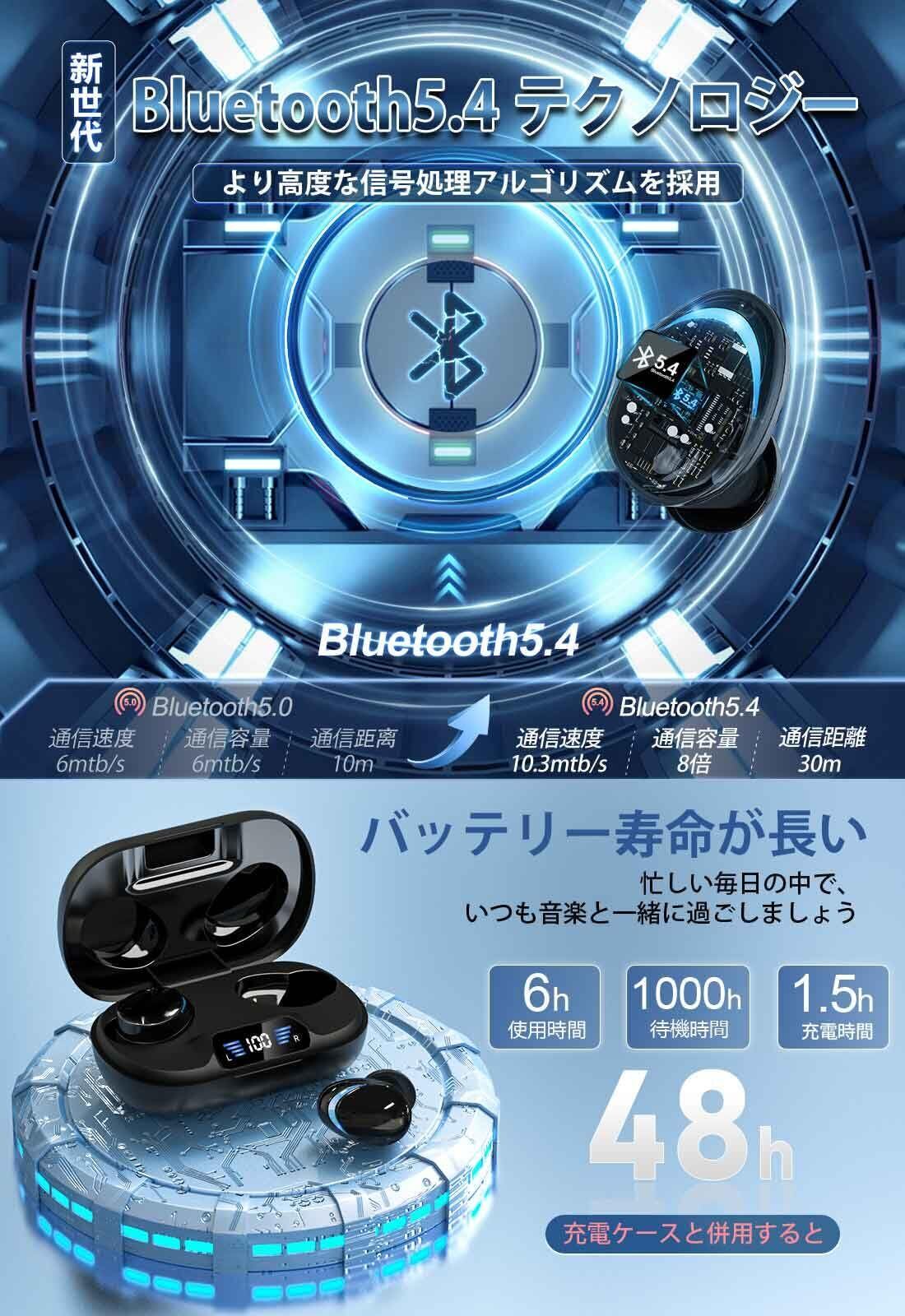 【2025新設計人気 Bluetooth 5.4 イヤホン】ワイヤレスイヤホン Hi-Fi音質 長時間連続再生 ENCノイズキャンセリング Type-C急速充電 IPX7防水 Siri対応 完全ぶるーとぅーす タッチコントロール 片耳/両耳 左右分離型 小型/軽量/通学/スポーツ