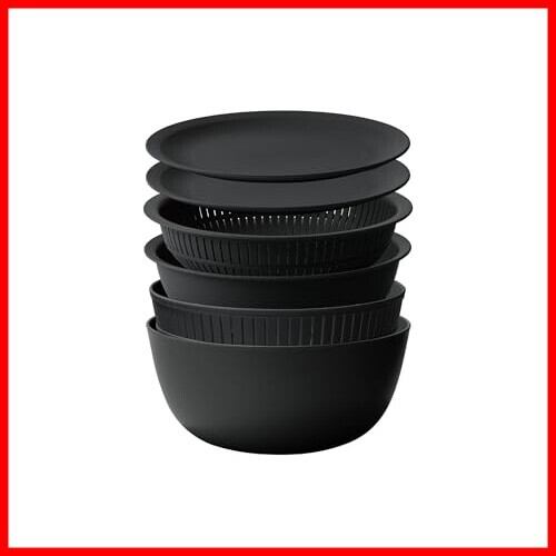 ライクイット (like-it) ざる ボウル 電子レンジ対応 Colander&Bowl 米とぎにも使える ザルとボール ブラック 6点セット 日本製 水切り 湯切り可能 耐熱ボウル