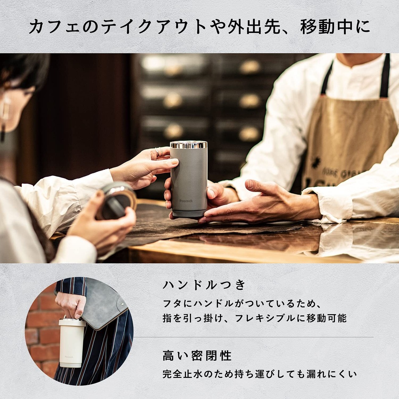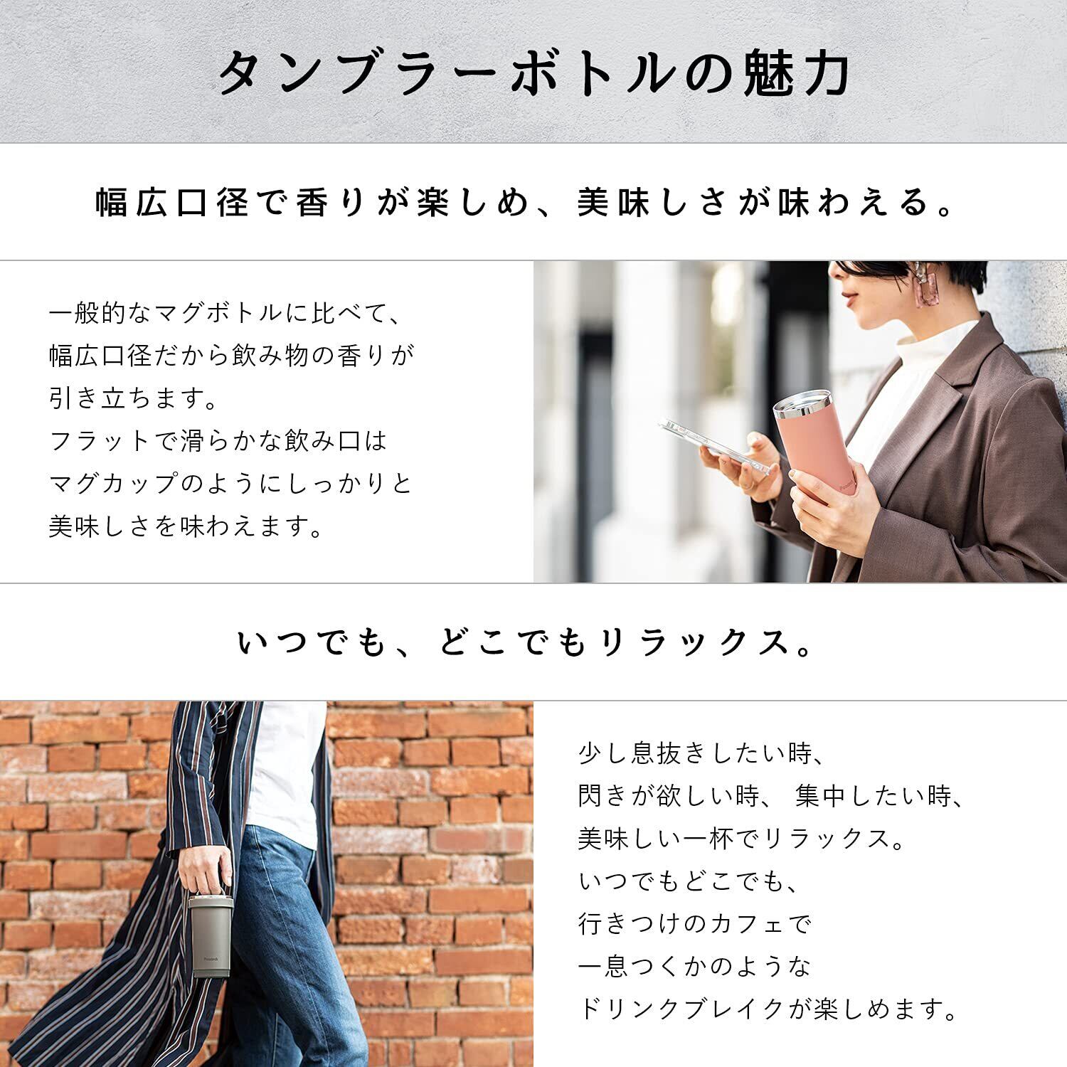素材・材質:内瓶/ステンレス鋼、胴部/ステンレス鋼(ポリエステル樹脂塗装)、せん/ポリプロピレン、パッキン/シリコーンゴム、底ゴム/水添スチレン系熱可塑性エラストマー