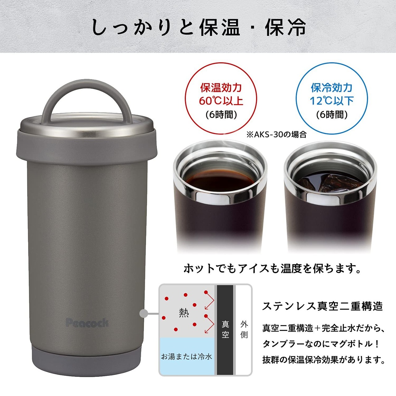 保温効力:60℃以上(6時間)、保冷効力:12℃以下(6時間)