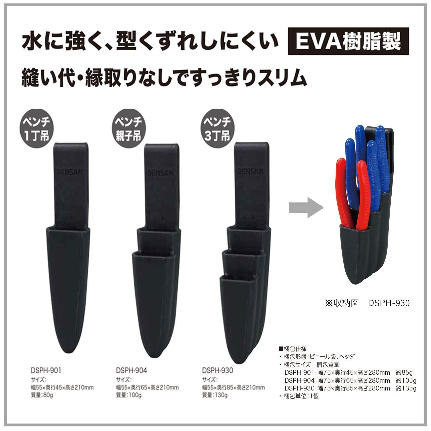 水に強く、型崩れしにくいEVA樹脂製(ペンチ1丁吊)