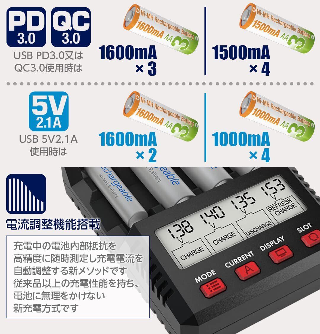 【急速充電、放電、リフレッシュ、内部抵抗測定、電池放熱性が進化】Ni-cd/Ni-MH (ニッケル水素/ニッケルカドミウム)単3・単4形充電池4本同時充・放電。※本製品に充電対象バッテリー、電池等は含まれておりません。
