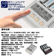 【電池を活かす自動充電電流調整機能 (クラス初搭載)】充電中の電池内部抵抗を高精度に随時測定し充電電流を自動調整する新メソッドです。従来品以上の充電性能を持ち、電池に無理をかけない新充電方式です。