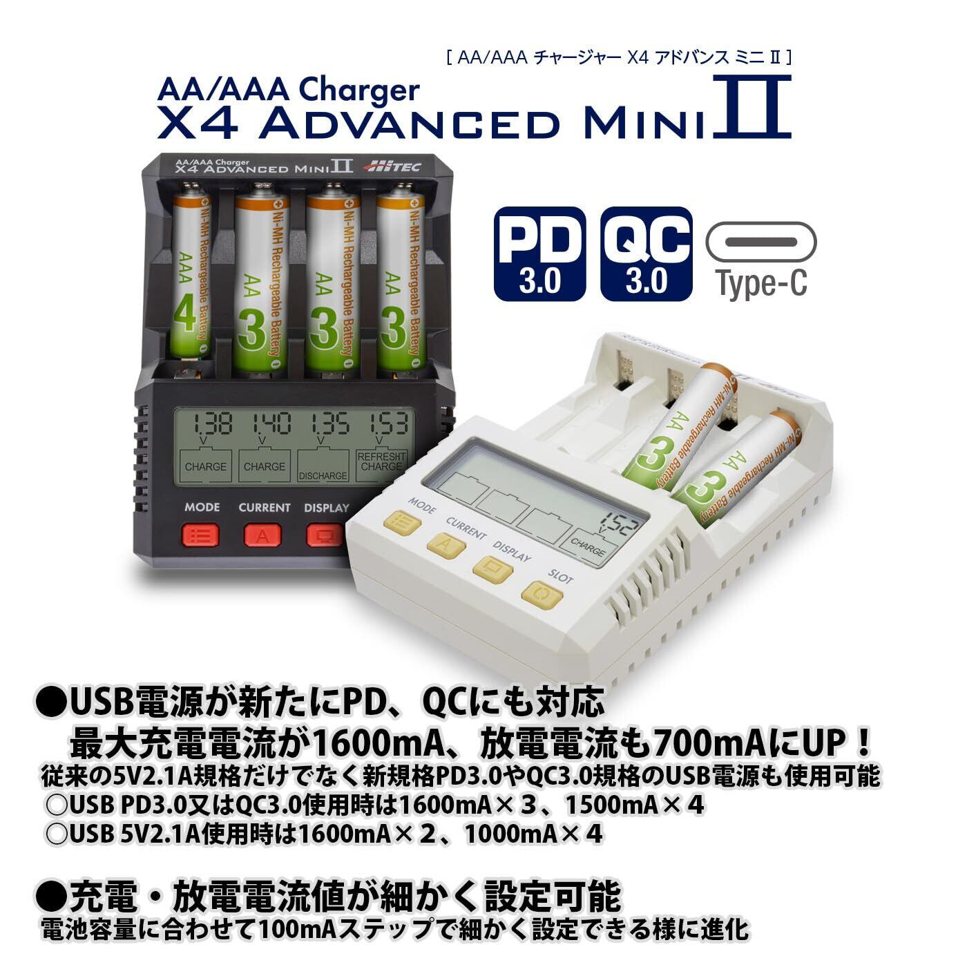 ハイテック AA/AAAチャージャー X4 Advanced mini II ブラック 日本正規品 単三 単四 乾 電池 バッテリー ミニ四駆 ミニッツ 初心者向け 44324