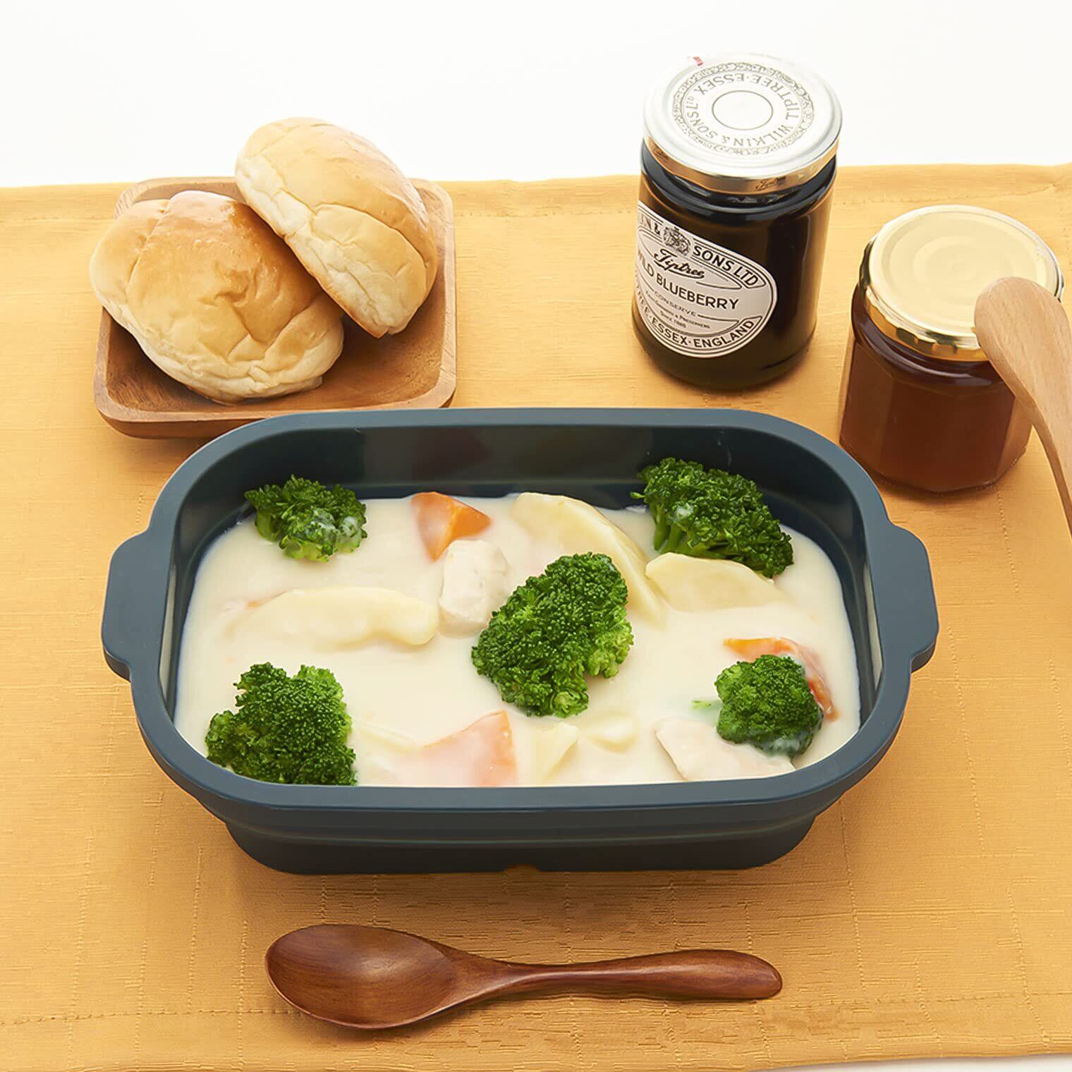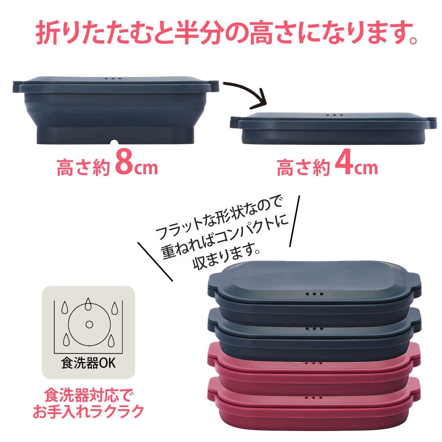 SG-05 tone フタがお皿になるシリコンスチーマー角型 電子レンジ調理 蒸し器 レシピつき 折りたたみ可能 食洗機対応 (ディープブルー)