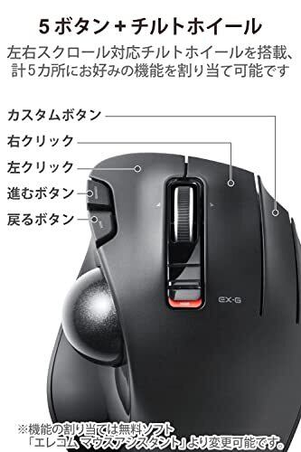 エレコム ワイヤレス トラックボールマウス EX-G 握りの極み 6ボタン チルトホイール(左右スクロール) ブラック M-XT3DRBK