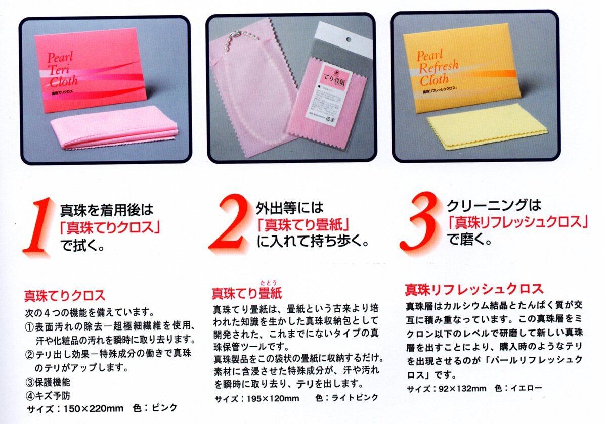 真珠専用 お手入れ 3点セット てりクロス/リフレッシュクロス/てり畳紙 パール用クリーニングクロス