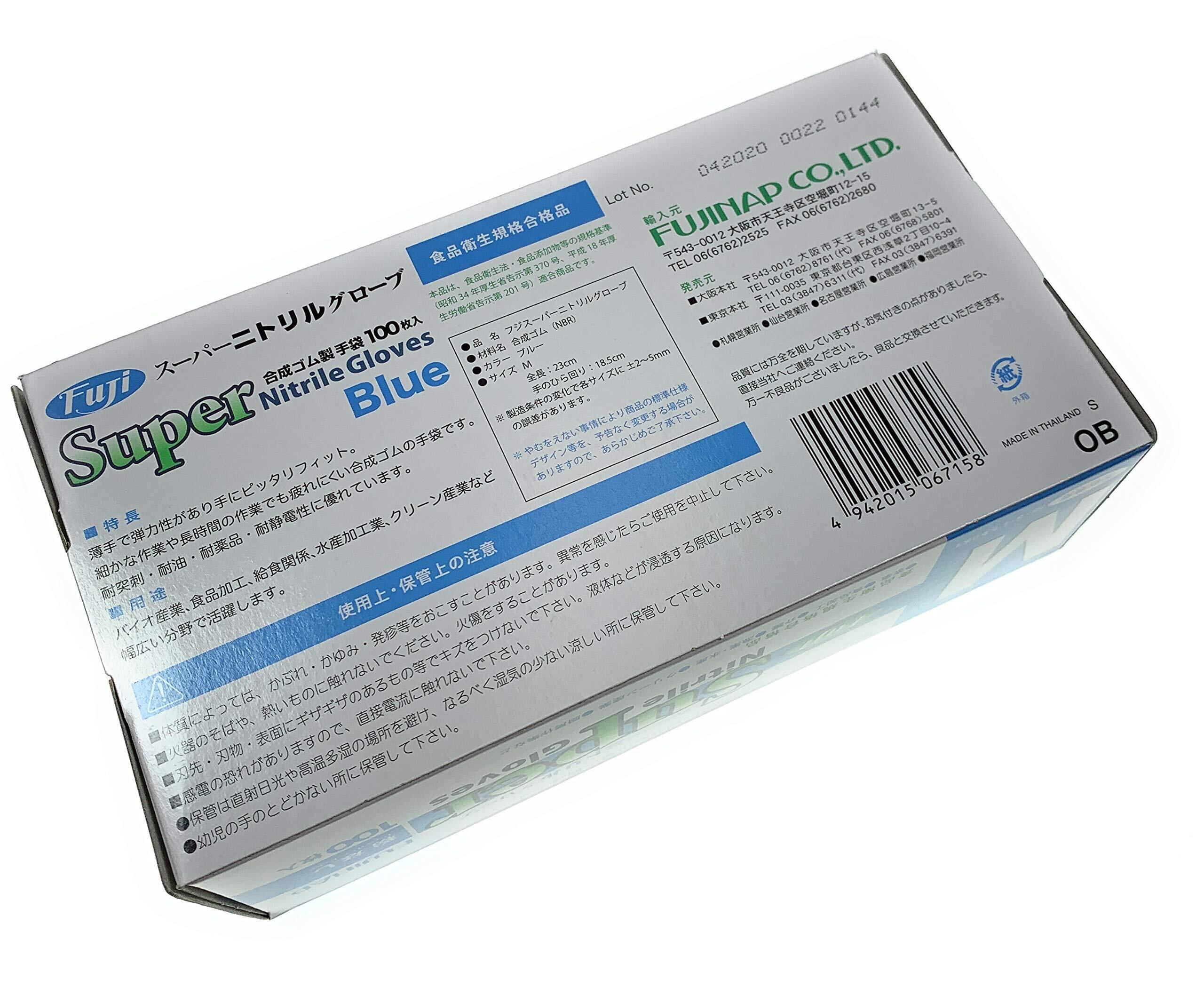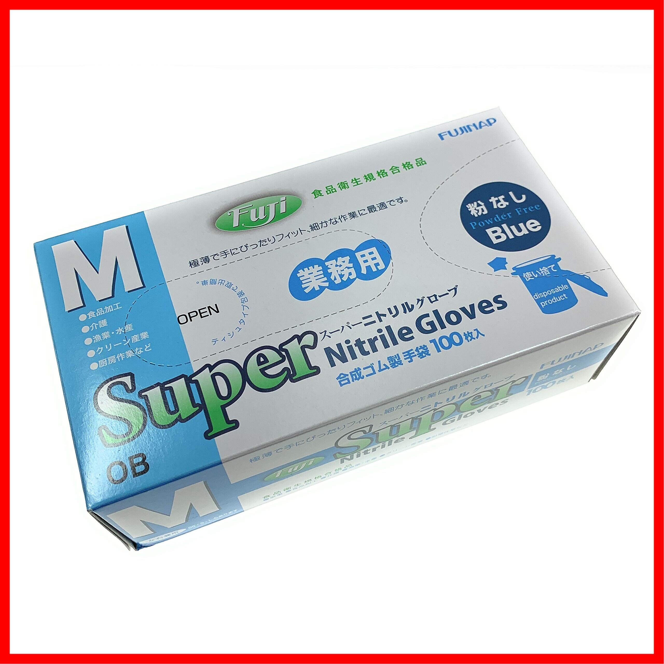 フジ スーパーニトリルグローブ 青 粉なし 選べるサイズ S M L 100枚 (M)