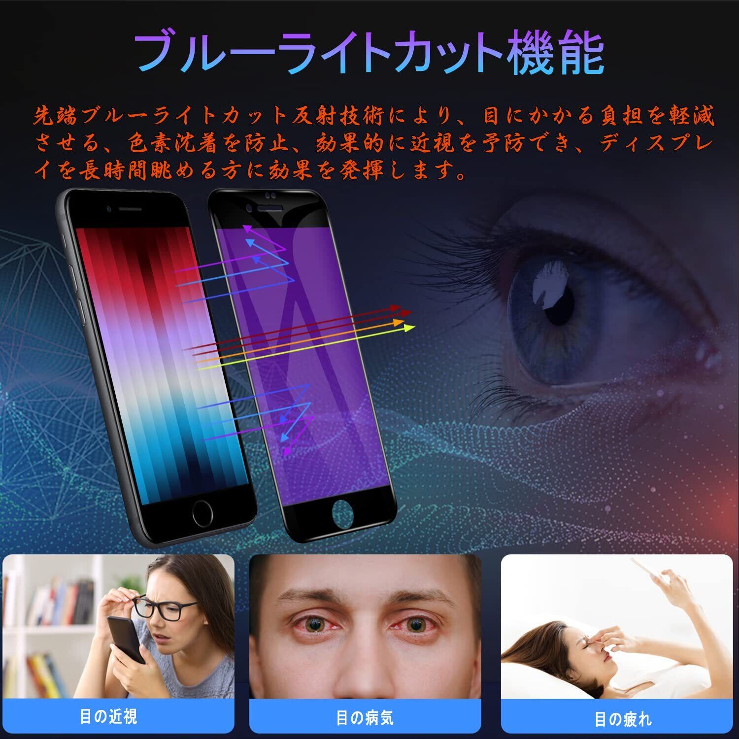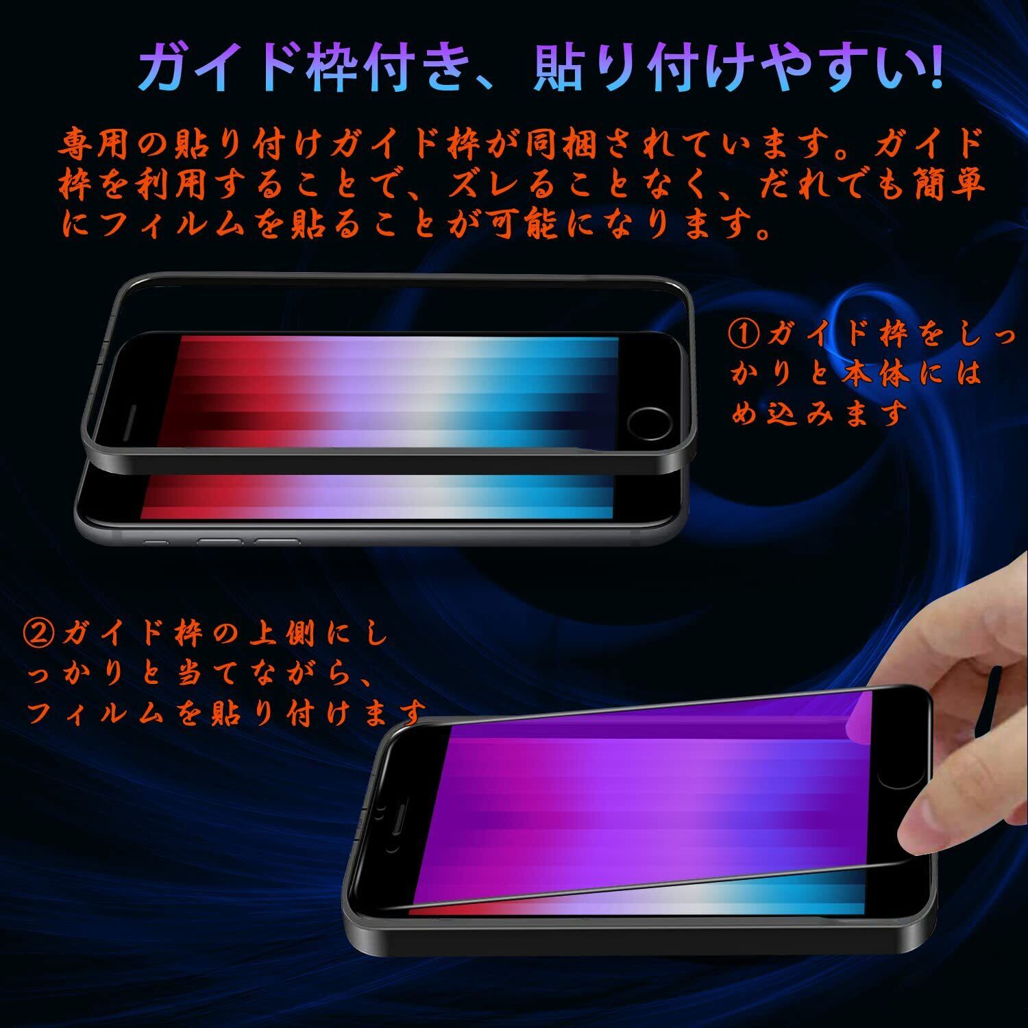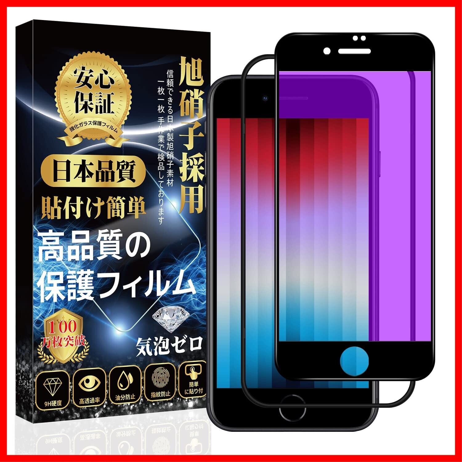 対応 iPhone SE (第3世代 / 第2世代) ガラスフィルム 【ブルーライトカット】 iPhone SE3 / SE2 液晶 保護フィルム iphone 8/7 フィルム 【貼り付け簡単/指紋防止/気泡防止/飛散防止/キズ防止】 アイフォン SE3/SE2/8/7 強化ガラスフィルム (1枚)