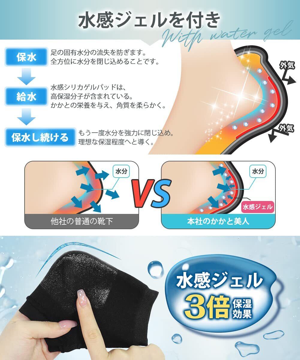 【3STEPかかとケア、3倍強力保湿】 当かかとケア 靴下は主に「保水ー給水ー保水し続ける」という3つの過程を通じてかかとの保湿を実現しています。まずは保水保湿の第一歩は水分の流失を防ぎ。マットは足のかかとの皮膚に十分にフィットし、全方位に水分を閉じ込めることです。次は水感シリカゲルパッドは、通常のシリカゲルパッドよりも保湿性が抜群。高保湿分子が含まれている。かかとの栄養を与え、角質を柔らかくし、滑らかになって柔軟性を高めります。最後にもう一度水分を強力に閉じ込め。理想な保湿程度へと導くかかと保湿ソックスです。