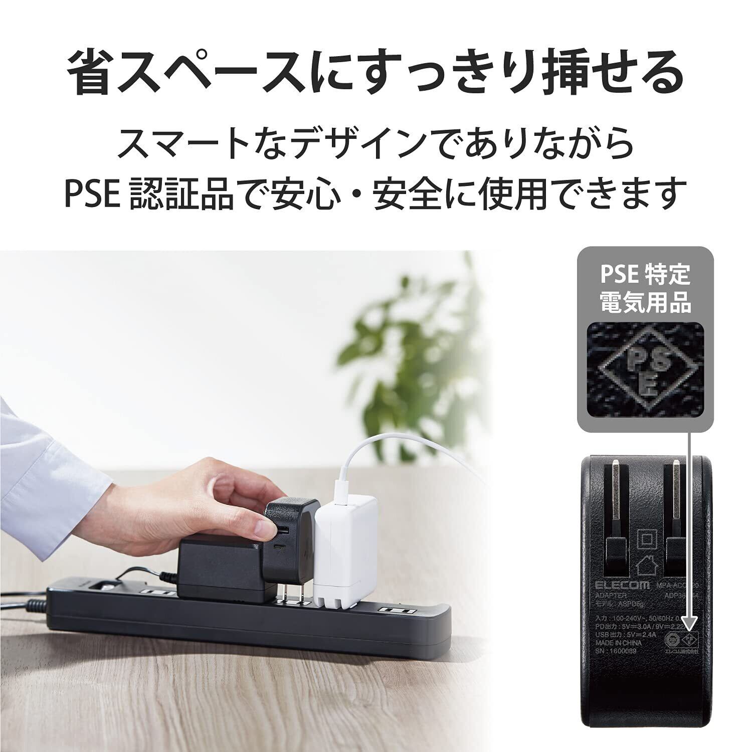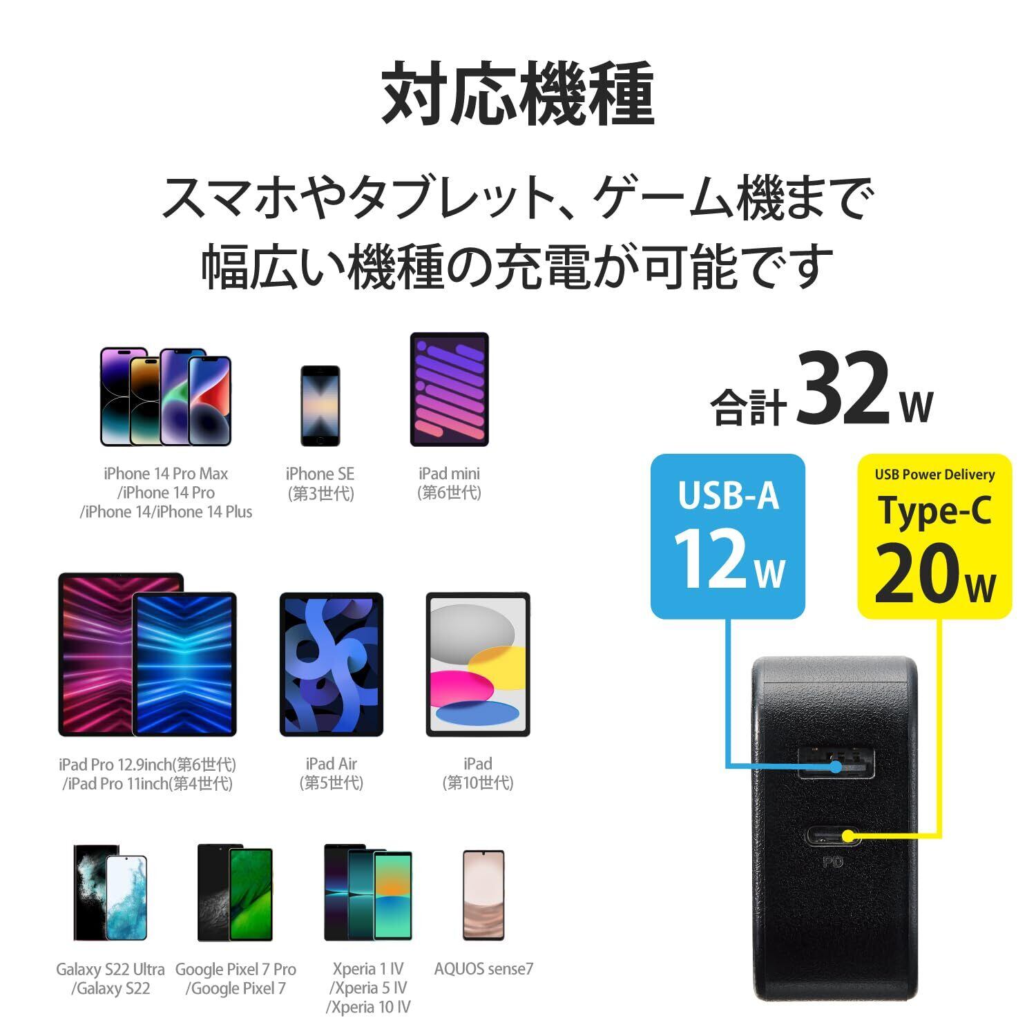 エレコム 充電器 USB PD対応 合計32W 2ポート Type-C(20W) USB-A(12W) 折りたたみ式プラグ 2台同時充電 【 iPhone SE3 / 13 / 12 / iPad / Android 各種対応】 ブラック MPA-ACCP20BK