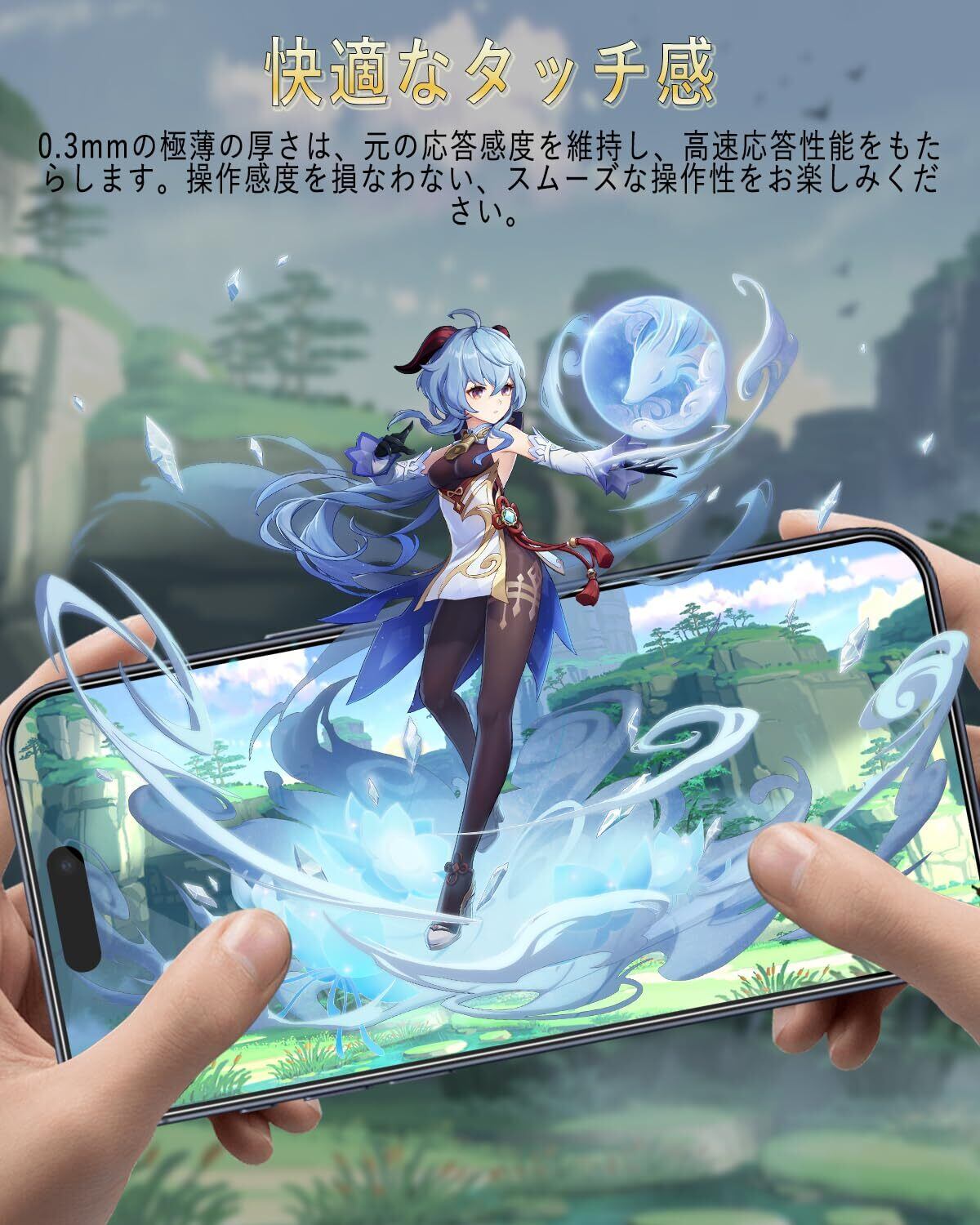 【高透過率】画質を徹底して追求するため、最高級のガラスを選択し、高透過率を実現しました。透き通ったガラスフィルムに多層フィルタフィルムを採用し、素晴らしい透明度を確保して、一体感になって、まるで貼っていないみないような感覚で携帯の美しさはそのままにお楽しみいただけます。
