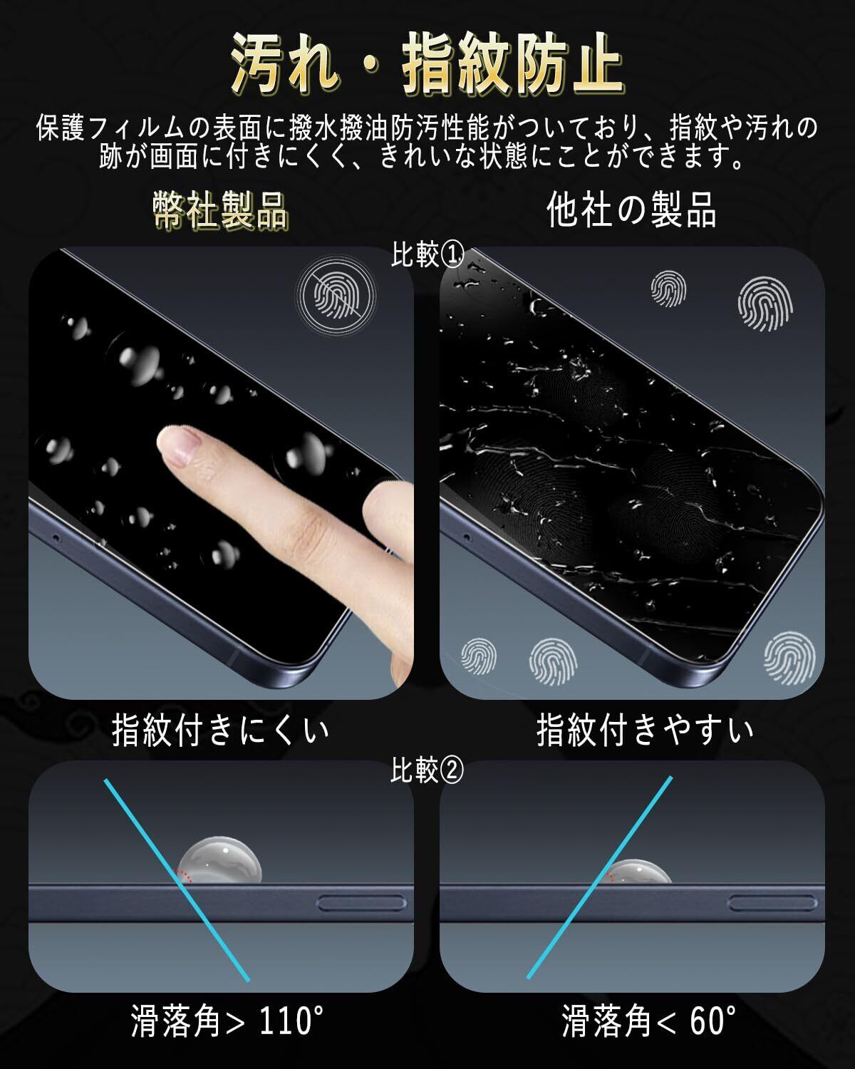 【指紋防止·撥水撥油】疎水性と疎油性のクリア レイヤーでコーティングされたガラスは、指紋による汗や油分の残留を防ぎ、携帯電話の液晶画面をきれいに保持します。フィルムに汚れ、水滴、ほこりがある場合は、簡単に拭き取ることができます。