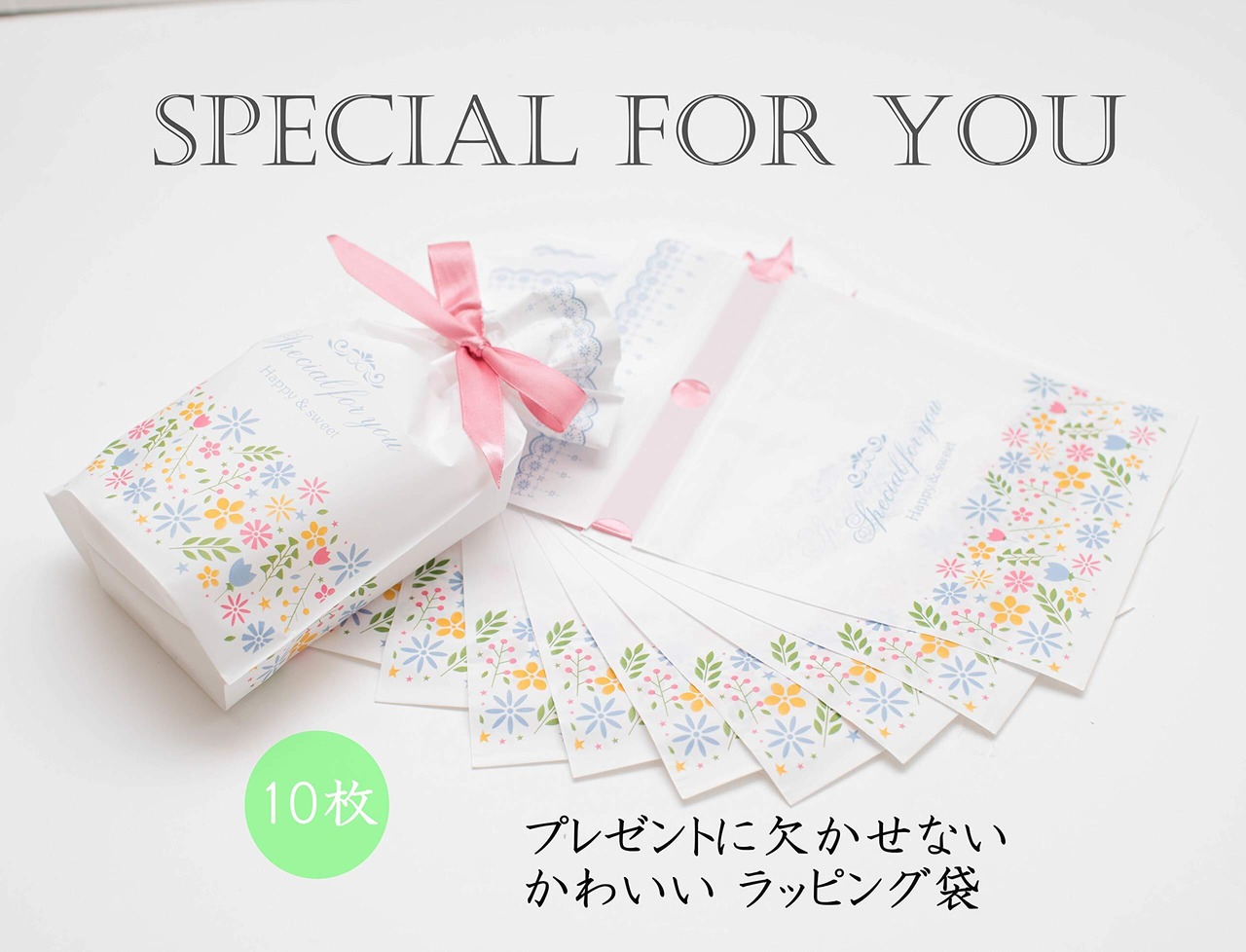 Hibridge TAKASUE ラッピング袋 リボン マチ付き かわいい プレゼント用 10枚入 贈り物 包装【ホワイト】