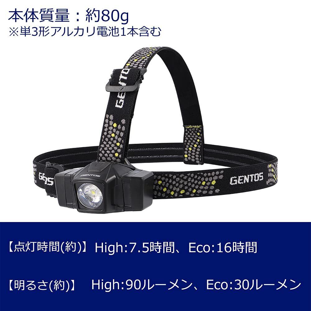 GENTOS(ジェントス) LED ヘッドライト 小型 単3電池式 90ルーメン GD-102D 登山 釣り
