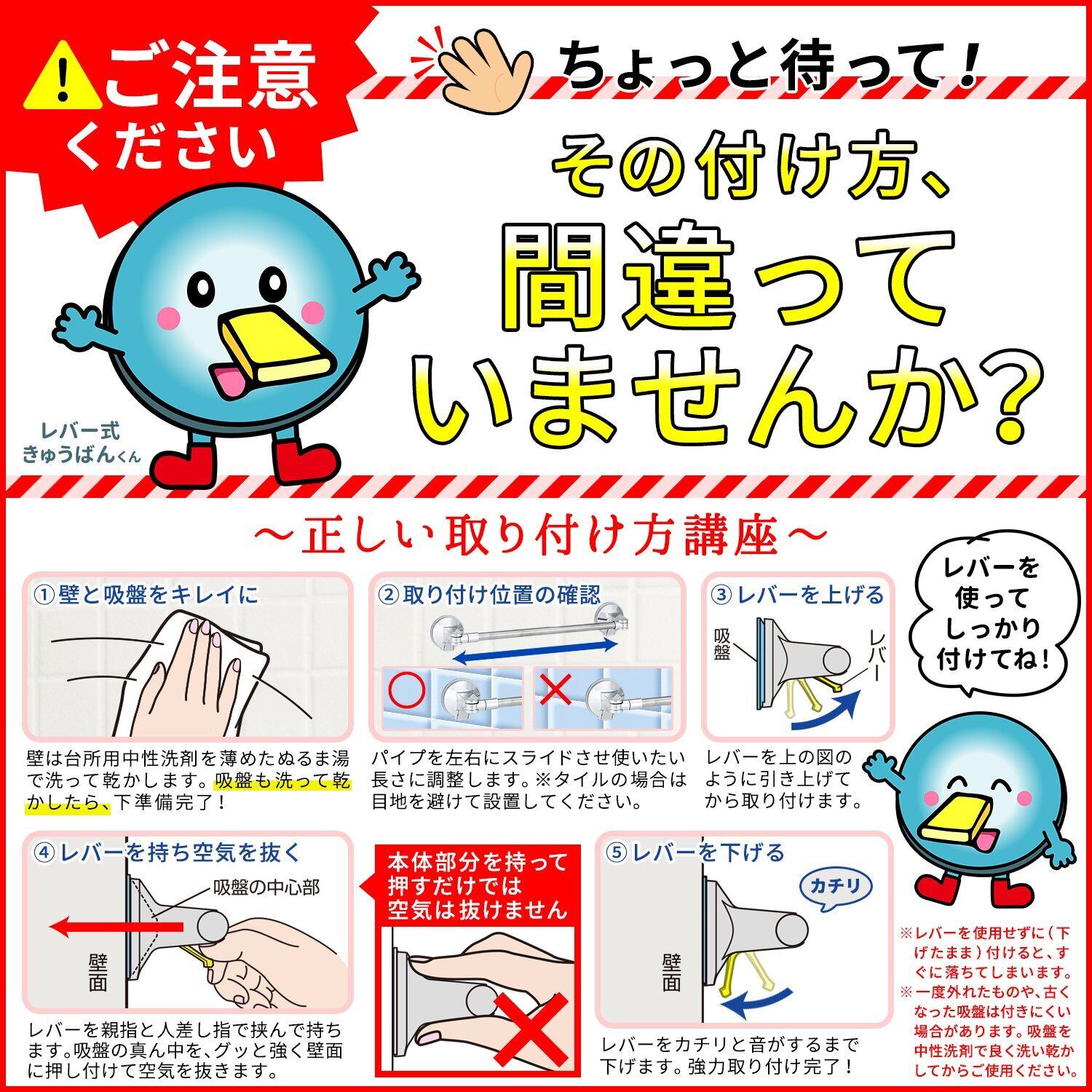 つけ外しが簡単なレバー式吸盤タイプ。