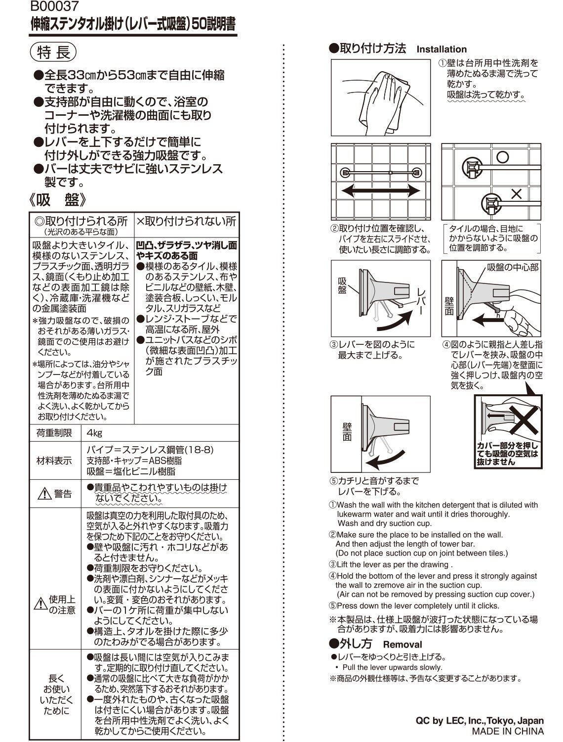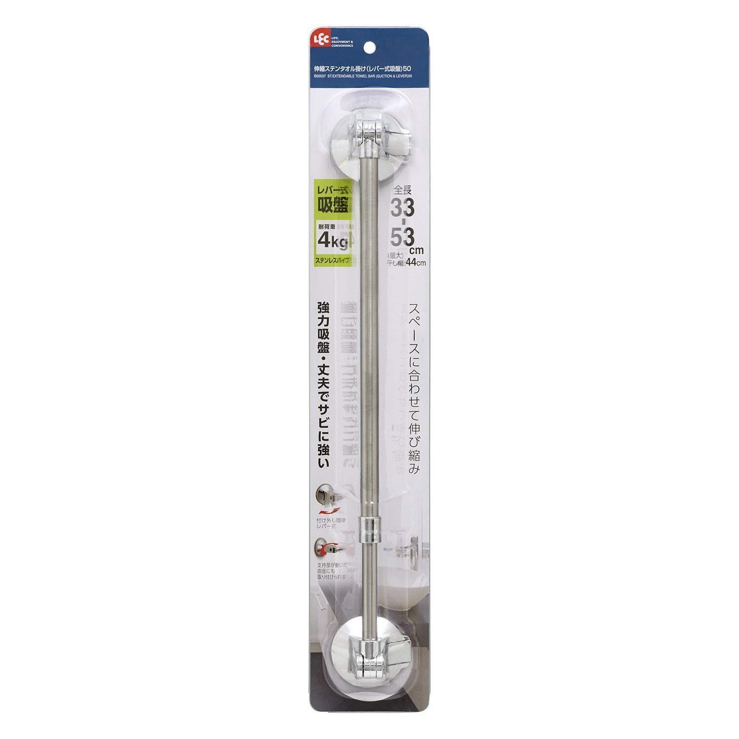 レック 伸縮 ステンレス タオル掛け 50 (レバー式吸盤) 全長33~53cm B00037