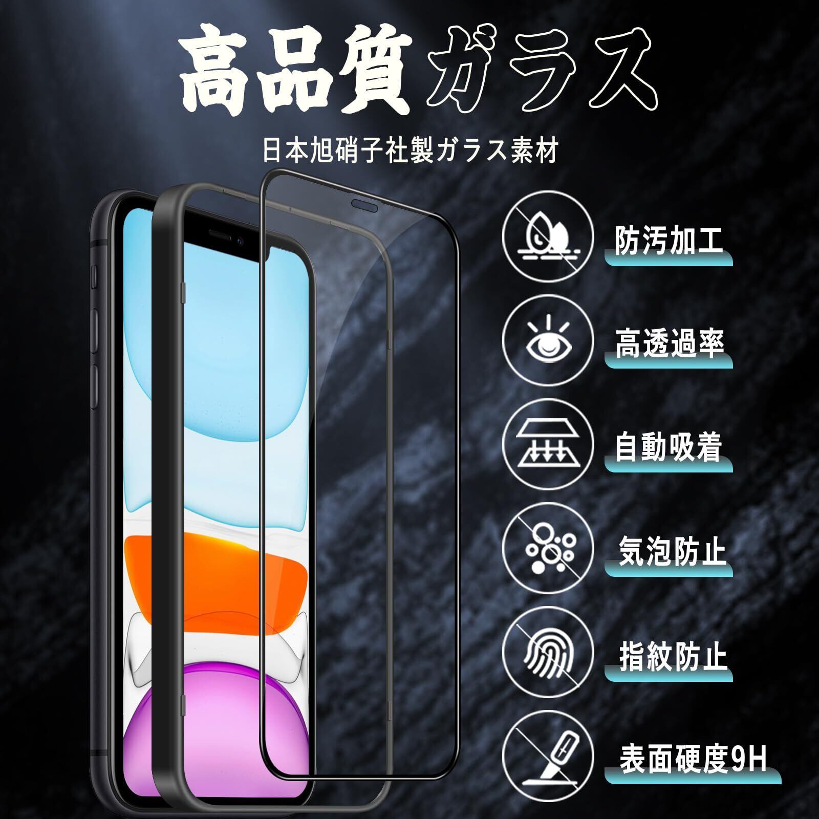 対応 iPhone 11 / iPhone XR ガラスフィルム 強化ガラス 保護フィルム (貼り付け簡単 指紋防止 気泡防止 飛散防止 キズ防止) iPhone 11 / iPhone XR 強化ガラスフィルム 【2枚・全面保護】