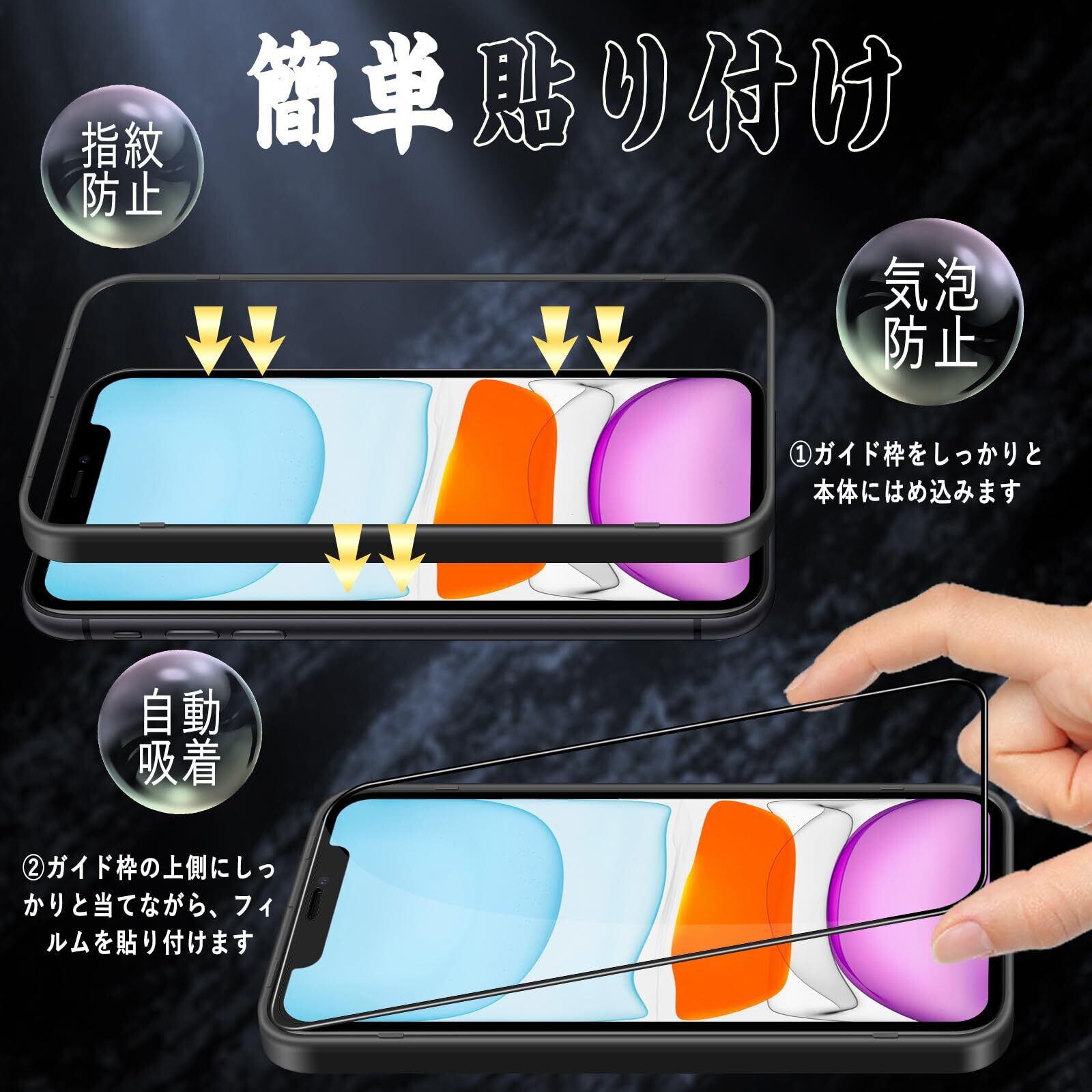 【貼付け簡単・専用ガイド枠付き】専用の貼り付けガイド枠が同梱されています。ガイド枠を利用することで、初心者でも簡単に貼り付けます。すべての失敗の発生を防ぐことができて、ご心配を完全に解消します!グレードアップしたイオン自働吸着技術を採用して、初心者でもたった3ステップ、10秒で簡単に綺麗で貼り付けることができます。