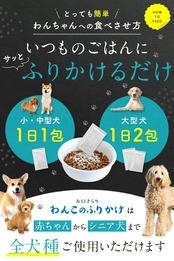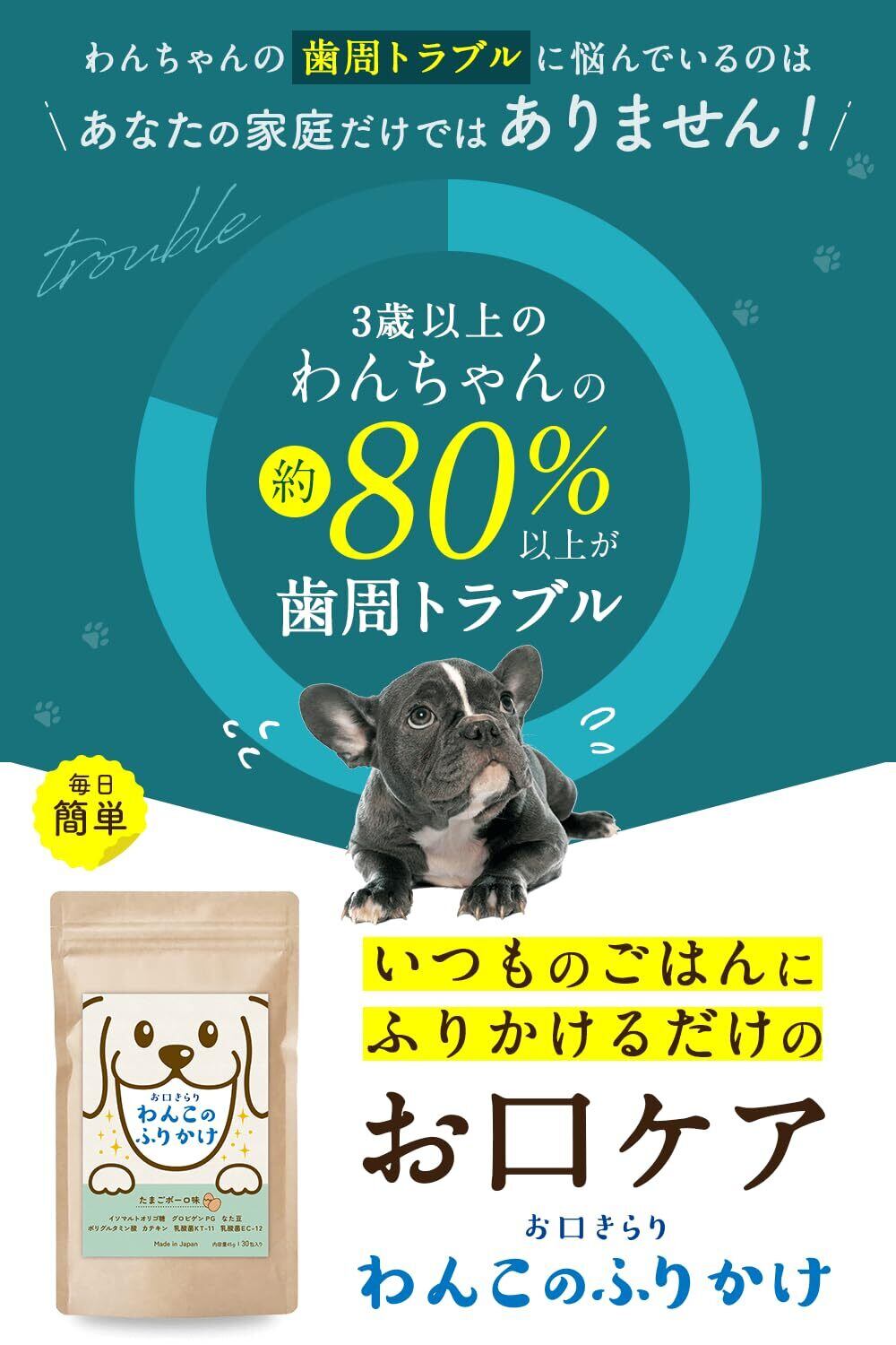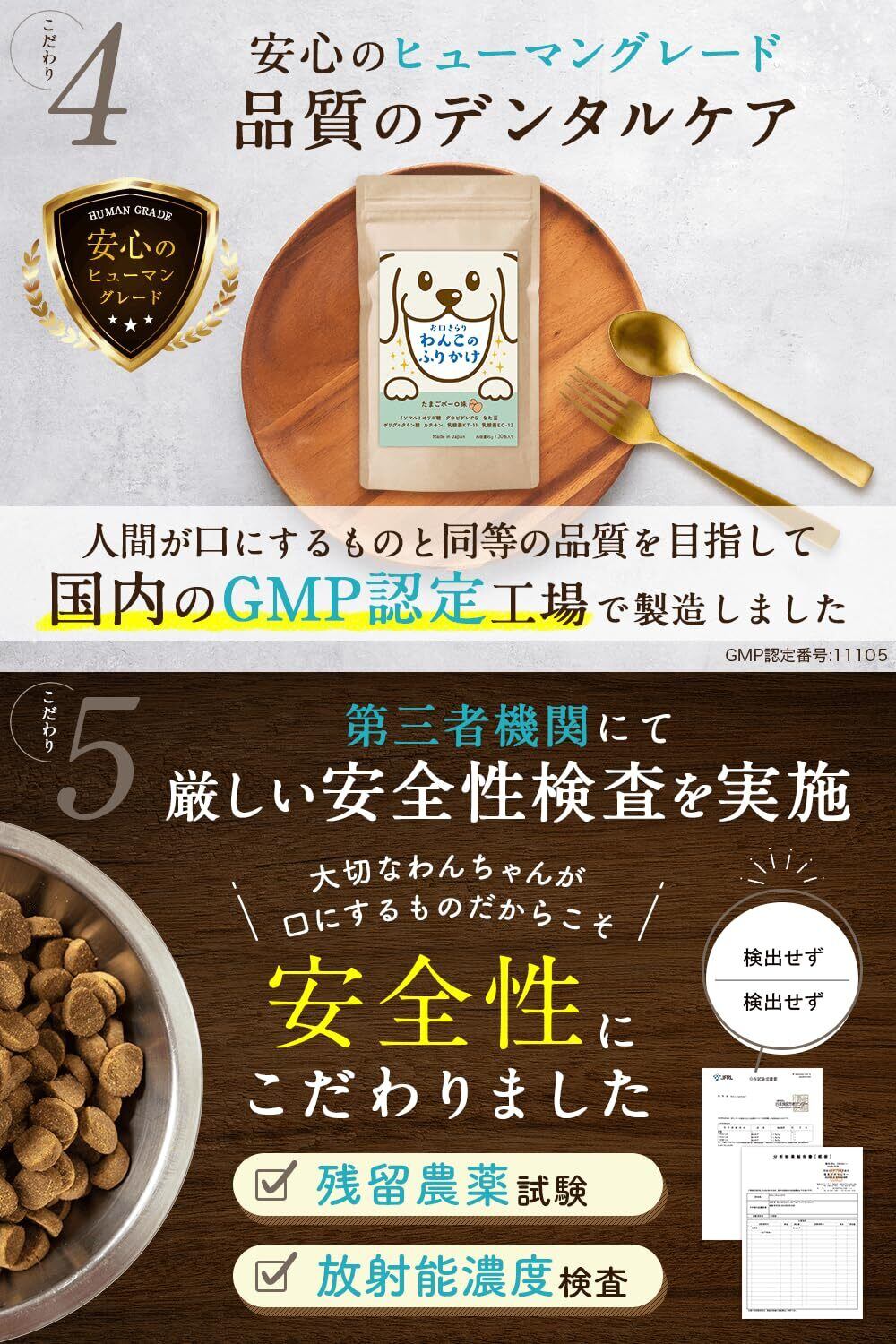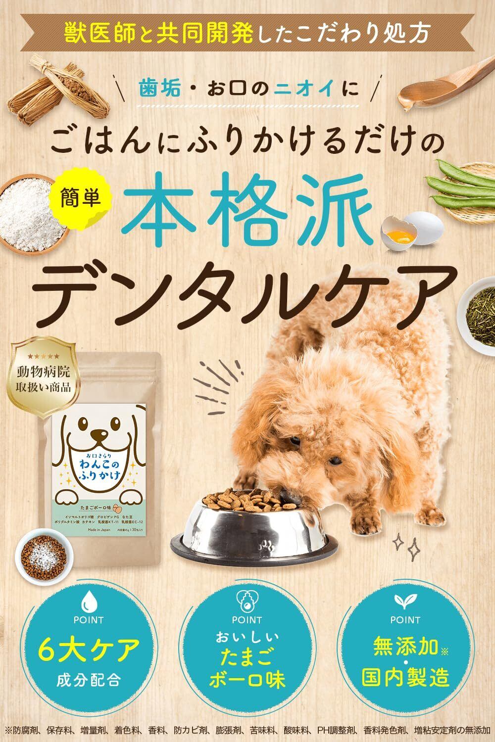 【歯周トラブルに6大成分】3歳以上のわんちゃんの80%以上が歯周トラブルを抱えています。わんこのふりかけは食べるだけで口臭・歯垢ケアできるように、こだわりの6大お口ケア成分を配合しました。