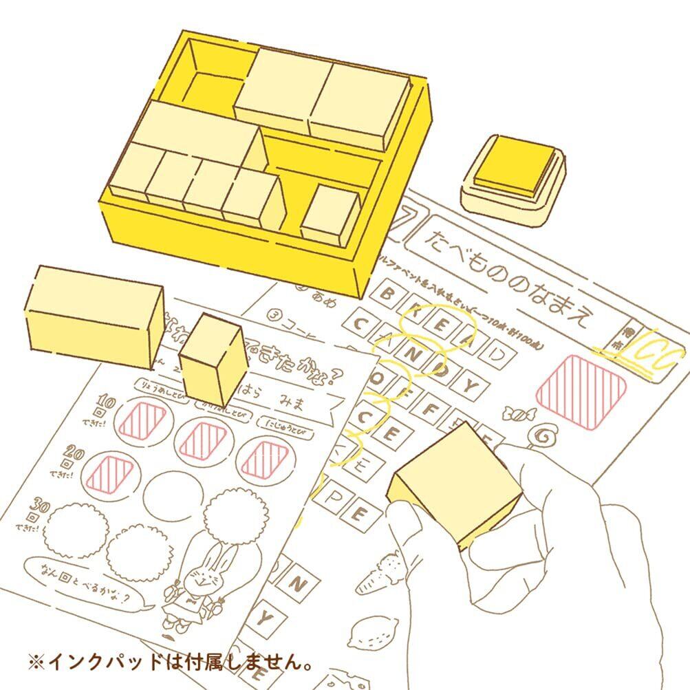 側面にプリント入りの木製収納BOXに入ったスタンプ。持っているだけでも楽しめます。