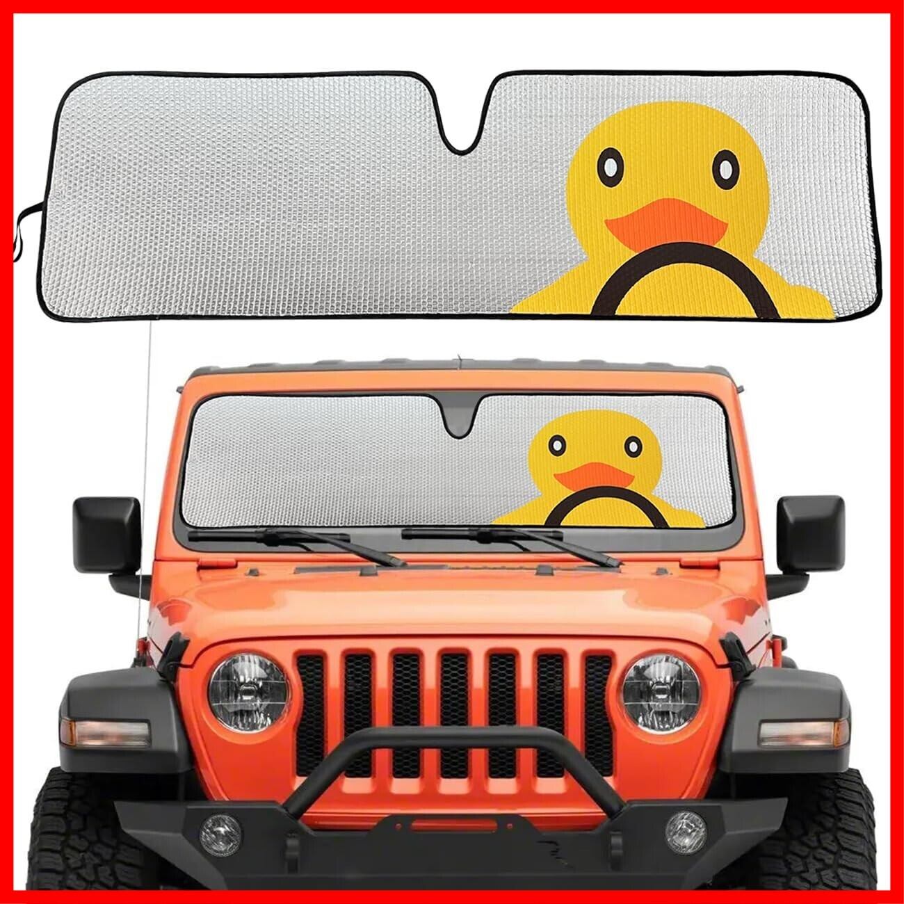 興味深いパターン:ジープ用のシェードヒートシールドは、使うたびに気分が良くなるように、とても楽しいアヒルのグラフィックを印刷しました。