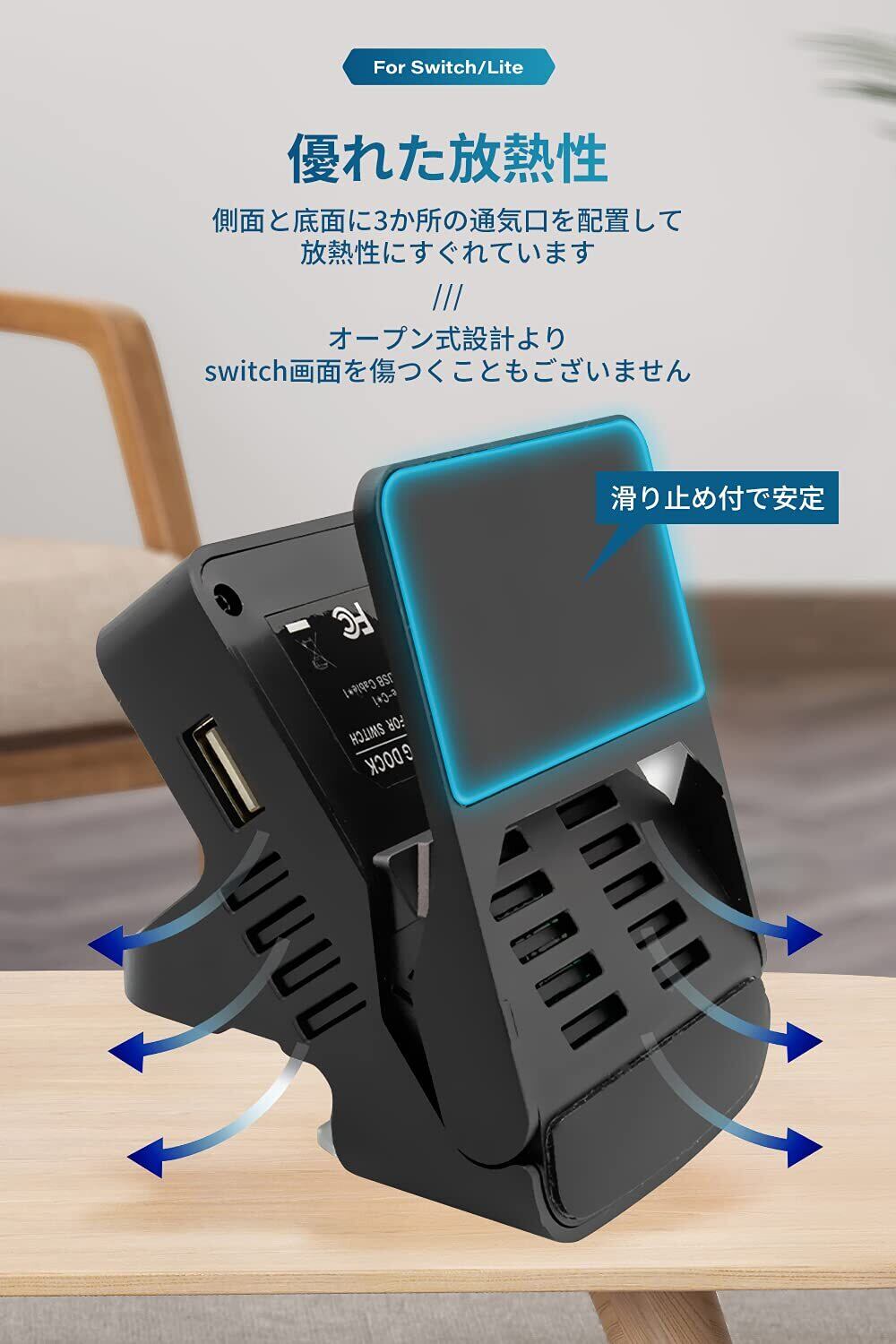 【優れた放熱性能・滑り止め】純正のSwitch OLED/switchドックには通気口がほぼなく、冷却ファンも付いていないので熱がこもりやすいのですが、このミニドックは側面と底面に3か所通気口があり、放熱性に優れています。大切なSwitchを過熱から守っています。底面の滑り止めパッドで、しっかり固定します。保護フィルムがついているので外して使用してください。