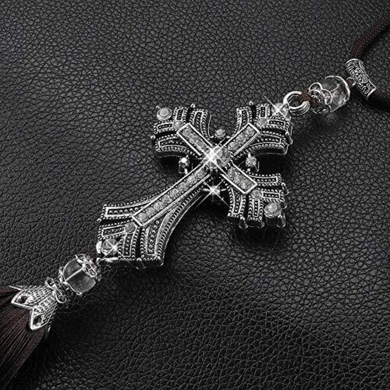 ルームミラー用 十字架 車内 キラキラ カーミラー アクセサリー プレゼント 内装 飾り 雑貨 お守り 風水 車内アクセサリー 吊り バックミラー 装飾 ドレスアップ 車用品