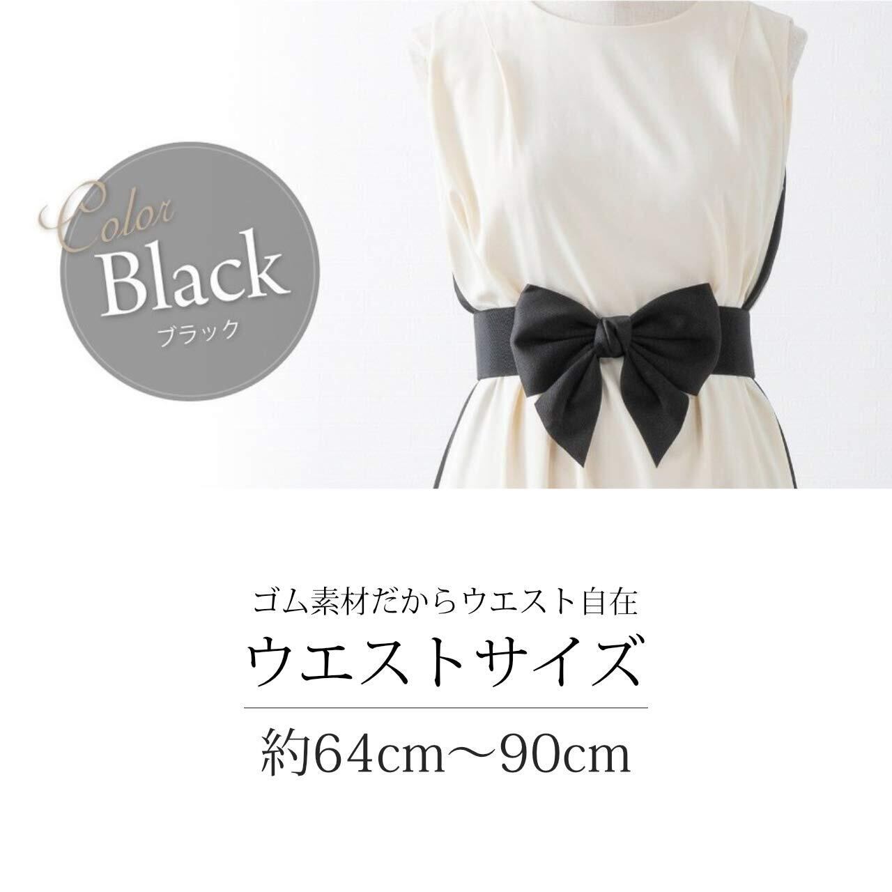 [ベル] リボン ベルト ゴム レディース ウエスト マーク モチーフ パーティー ドレス サッシュ スタイリッシュ コーディネート お呼ばれ 結婚式 二次会 発表会 謝恩会 スナップ ボタン 春 夏 秋 冬 おしゃれ お洒落 可愛い かわいい 太ベルト スカート サイズ 調整 幅広 フォーマル プレゼント ギフト 贈り物 デート (god158 ブラック)