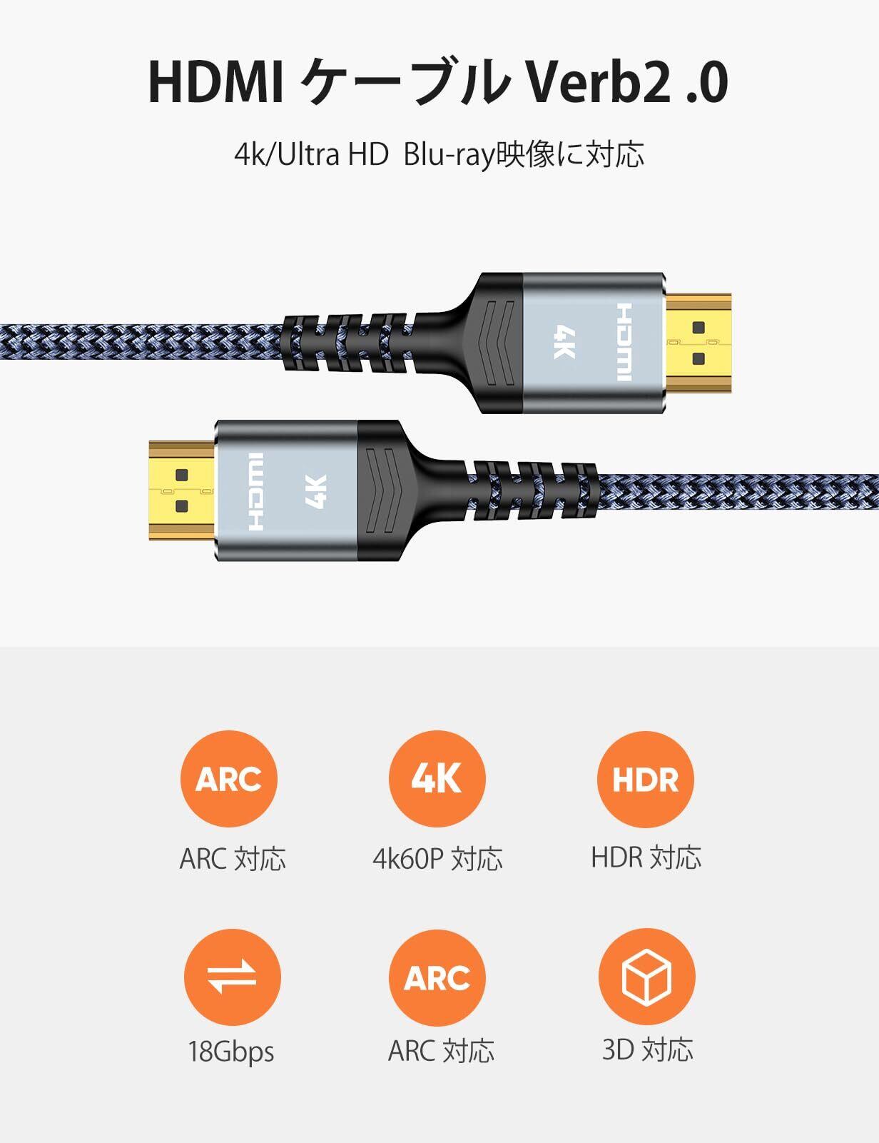 【HDMI Ver2.0基準】このHDMI ケーブルはHDMIVer2.0基準に適合(60Hzで4K対応、2160p、色深度48bit/px)。最大帯域幅18Gbpsまでサポート。hdmi Ver1.4などの旧バージョンとの互換性有ります。