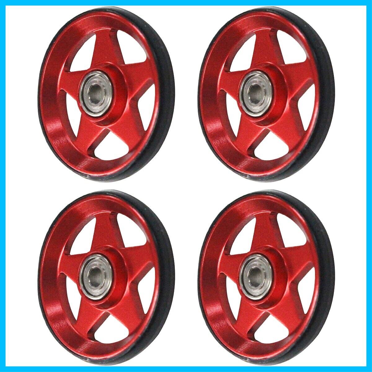 ミニ四駆 オール アルミ ベアリング ローラー 4個 セット 19mm プラリング付 5本スポーク 星型 レッド×ブラック パーツ