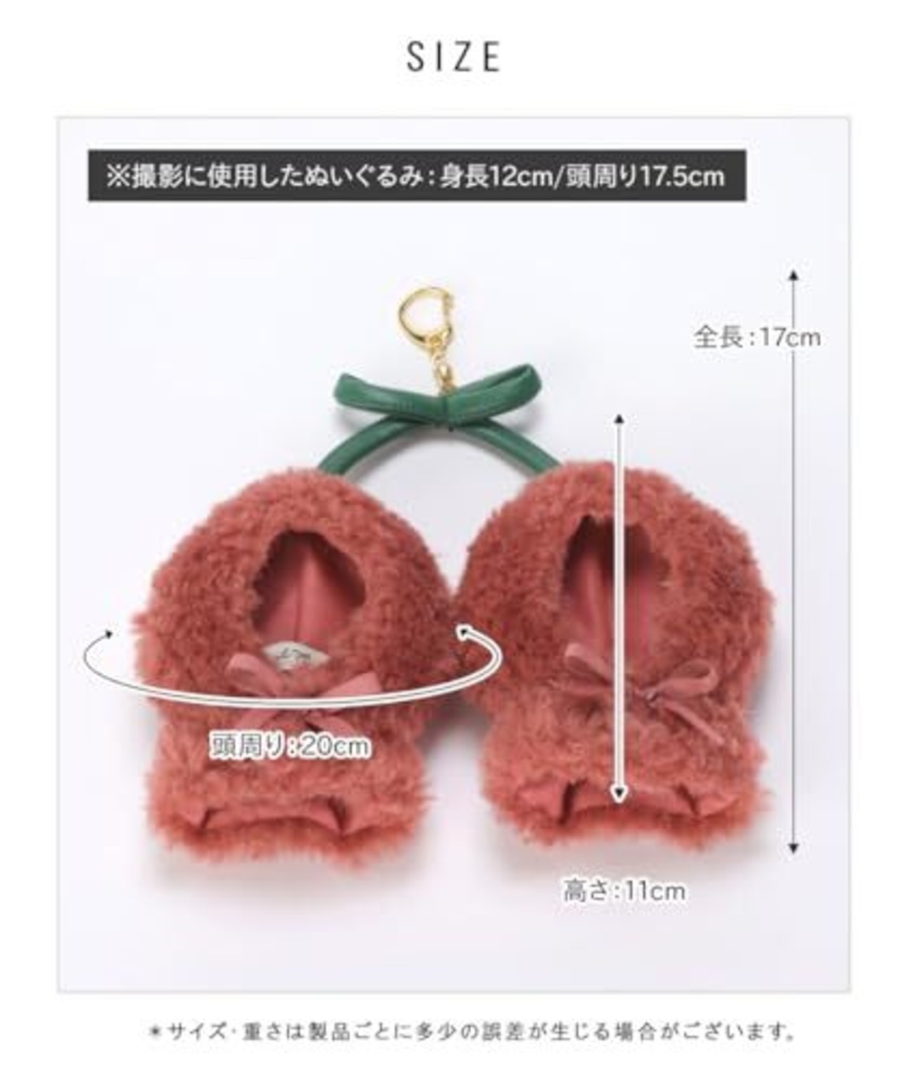 【サイズ】全長:17cm 頭周り:20cm 高さ:11cm(チャーム含まず)