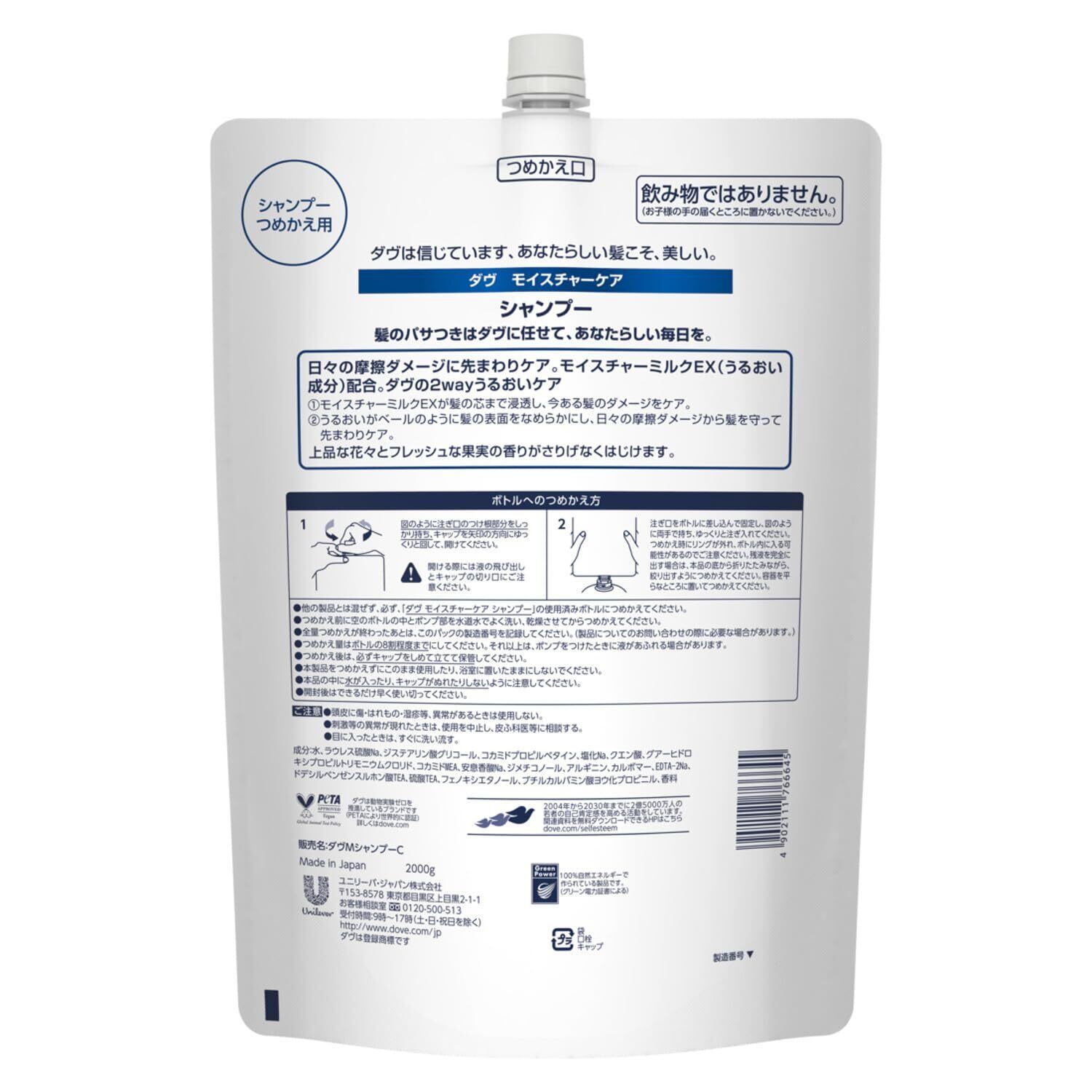 Dove (ダヴ) シャンプー 大容量 詰め替え 2kg モイスチャーケア