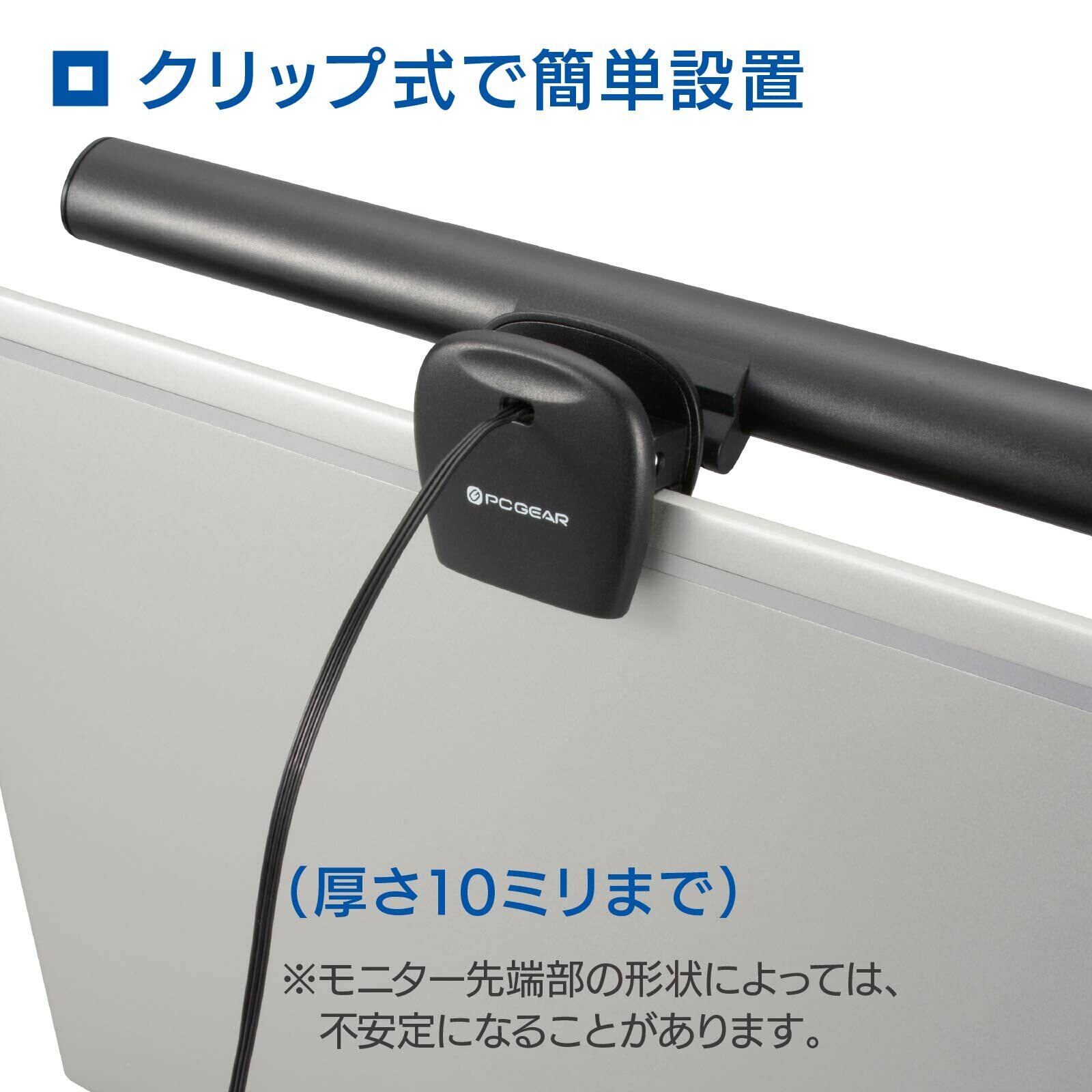 【 特 長 】● 厚さ10mmまでのモニターに対応● クリップ式で簡単設置● 10段階(約100~10%)調光、3段階(電球色/白色/昼光色)調色機能付き● 90°角度調節可能● USB給電(Type-A)● ウェブカメラが隠れない設計● コントローラー、収納ポーチ付